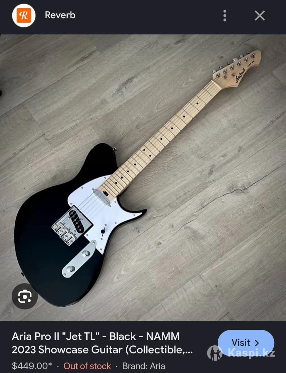 Aria pro II Jet TL - электрогитара формы offest telecaster. Корпус - скорее всего, липа или ольха. Гриф - клен, накладка палисандр. Мензура - 25.5". Лады - 24 Звукосниматели - два классических single-coil'а в стиле Tele — звучат ярко, с атаками, хорошо читаются в миксе. Бридж - фиксированный, телекастеровского типа. Она появилась у меня месяца 4 назад, в качестве подарка от другого человека, честно скажу незнаю сколько она у нее была, но состояние отличное, не старая, и, работает хорошо. Может появиться мысль, печенью у такого симбиоза джаззматсера и телекастера завышенная цена, я поспешу сказать что цена вполне оправдана. Оффест телекастер не китайская, фальшивая, выдуманная форма как кажется на первый взгляд, эту форму выпустили Фендер. В Казахстане этой гитары практически нету, в интернете/за рубежом она стоит где то 200тыс. так что цена вполне оправдана. Состояние гитары отличное, пару раз выступил на гигах, ни разу не подвела. Возможен обмен.