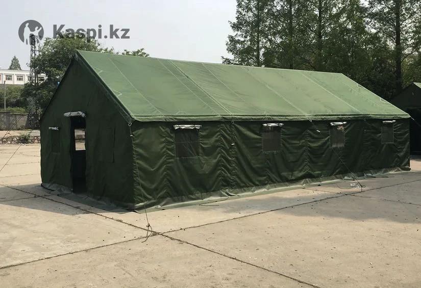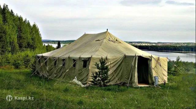 Палатка УСБ-56, новая Продается новая всесезонная палатка УСБ-56 для полевых условий. Вместимость до 20–80 человек (в зависимости от размещения). Площадь 58,5 м², высота до 3,55 м. Утепленная: внешний намет из парусины с водоотталкивающей пропиткой, внутренний намет из бязи, утепленные стенки, пол с ПВХ-покрытием. 2 входа с тамбурами, 6 окон с москитными сетками и шторами. Предусмотрена установка двух печей, есть 2 дымоходных отверстия. Подходит для вахты, МЧС, лагерей, туризма и временного проживания. Состояние: новое.
