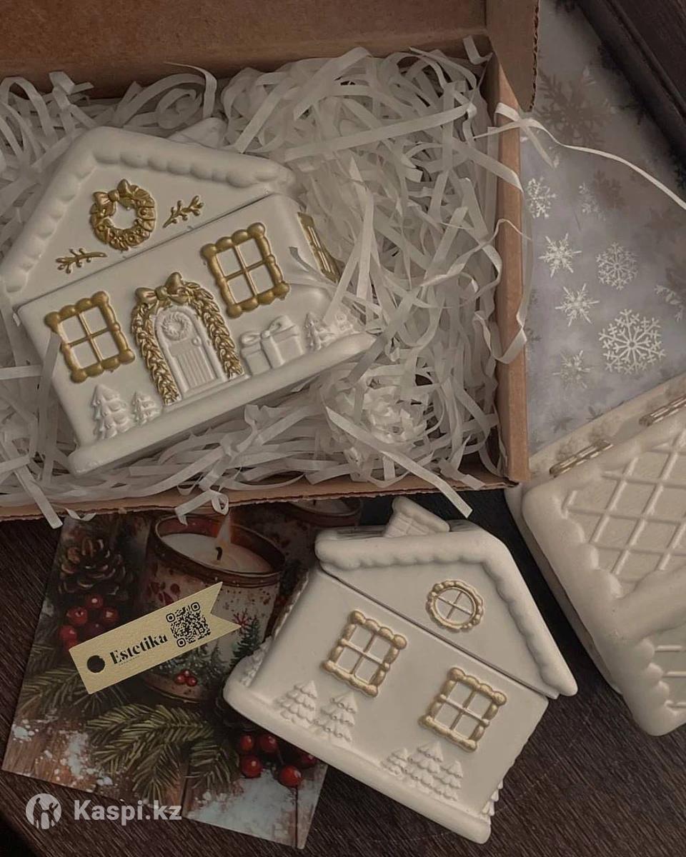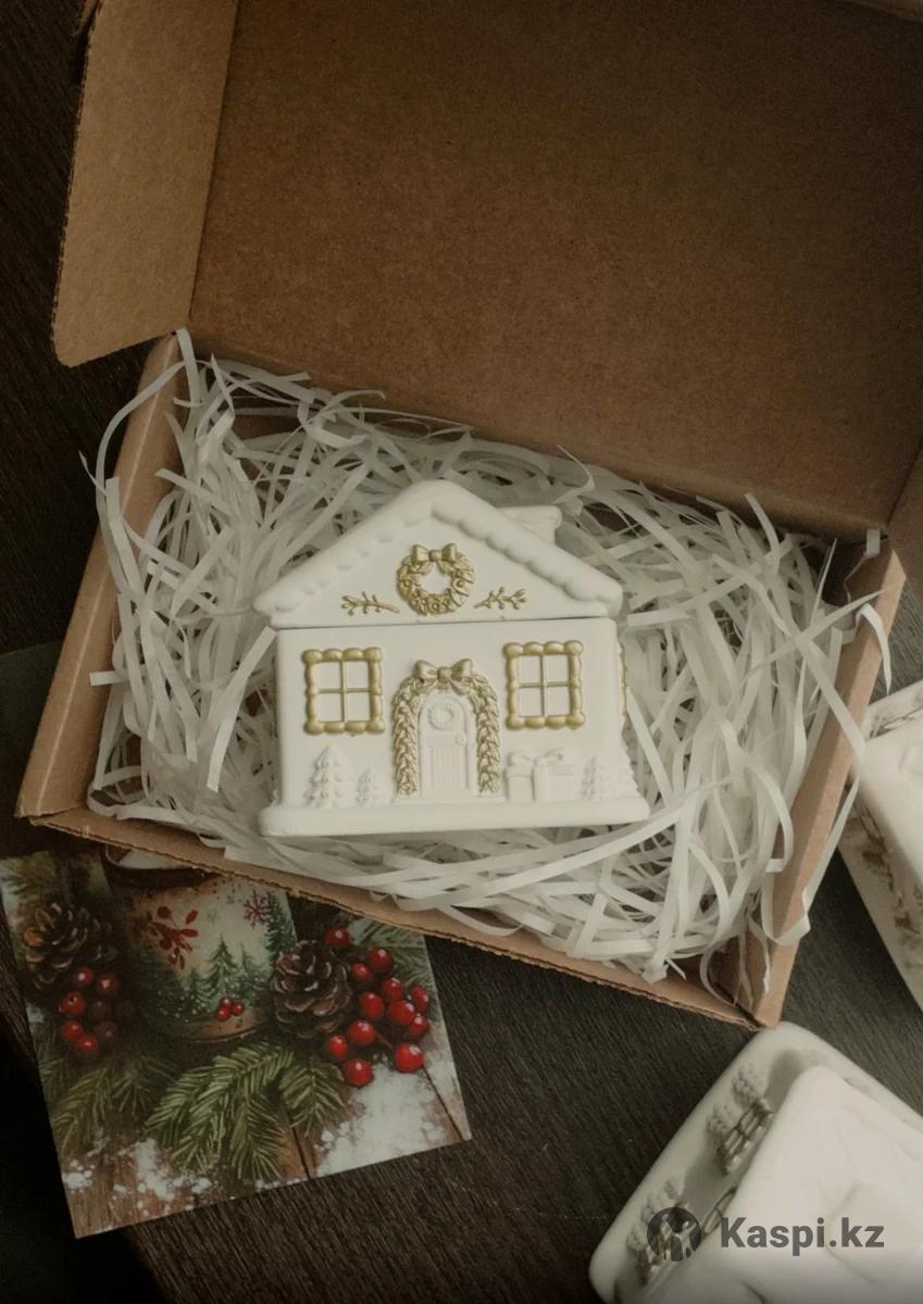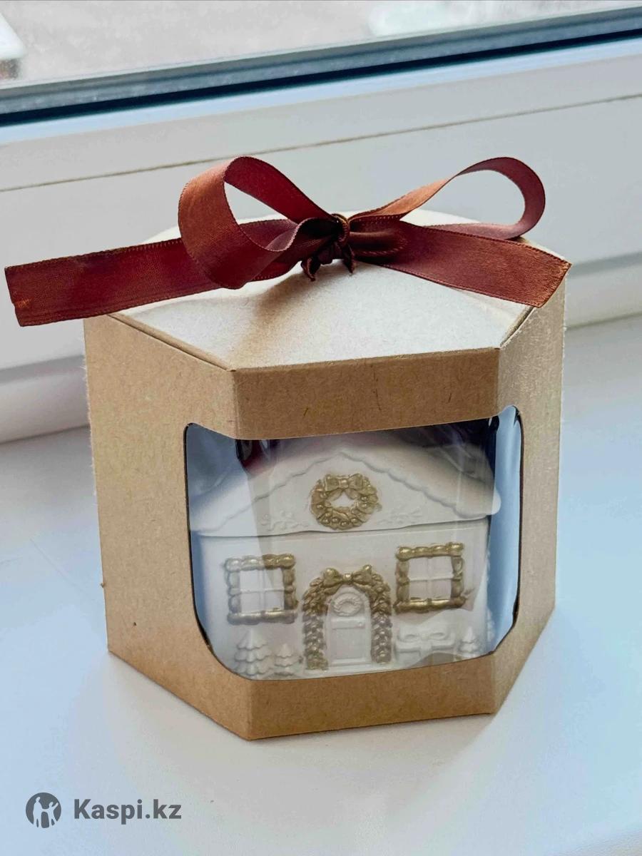 Уютная ароматическая свеча в виде зимнего домика – это и декор, и готовый подарок. Керамический домик с золотыми деталями (окна, венок, подарки, елочки) красиво смотрится на полке, под елкой, на камине или рабочень столе. Свеча сделана из натурального кокосового воска, который горит чище парафина и мягко раскрывает аромат. Деревянный фитиль из вишневого дерева при горении создает легкий треск, как маленький камин, и усиливает ощущение уюта. Аромат – на выбор (например, свежесваренный кофе или другие зимние композиции) – наполняет комнату теплым праздничным настроением. Свеча «Домик» идеально подходит в подарок друзьям, коллегам, учителям, а также для оформления новогодних фотозон и праздничного стола.