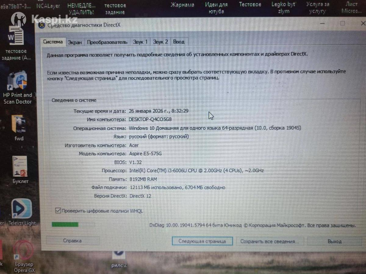 Acer aspire 15 - говорю сразу, не для игр. Работает отлично, офисными задачами справляется замечательно. Intel core i3-6006U (4 CPUs), 2.0GHz ОЗУ DDR4 - 8гб (вторую плашку 4гб добавил сам два года назад. плашка кингстон) SSD - 256гб Kingston Жесткий диск - 500гб. ОС - Windows 10 домашняя версия. Из минусов: легкие потертости образованные со временем. аккумулятору 5 лет, поэтому в основном работает от сети, без нее держится минут 20. Из плюсов: ноутбук действительно надежный и прочный. Отслужил верой и правдой. Можно поиграть даже в доту)) но на минимальных графических настройках. Простые и легкие игры тянет, но не больше. Когда будете брать, то обязательно подготовлю к продаже : сниму наклейки, прочищу от пыли процессор и клавиатуру. Придам товарный вид, как говорится) Блок питания новый и оригинальный, я его менял тоже два года назад. Цена не окончательная, договоримся за разумную стоимость. Вопросы? Звоните, пишите! Я всегда на связи.