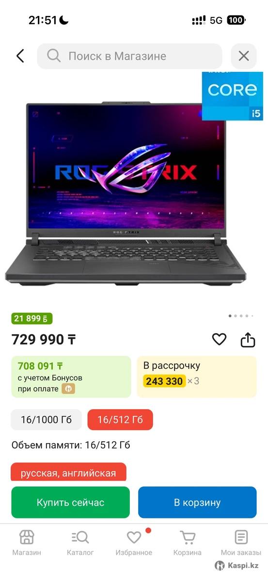 Игр ноут куплено 5-6 мес назад. Все тянет. Цена договорная. Наглеть не надо с торгом. Характеристики можете смотреть в каспи