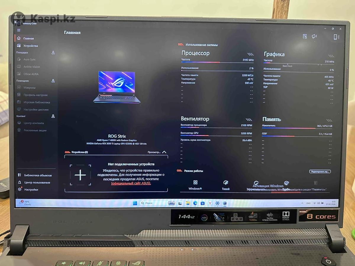 Asus rog strix g713, rtx3050TI, 17.3 дюймов, ryzen 7 4800H, в комплекте наушники хайпера cloud и мышка razer