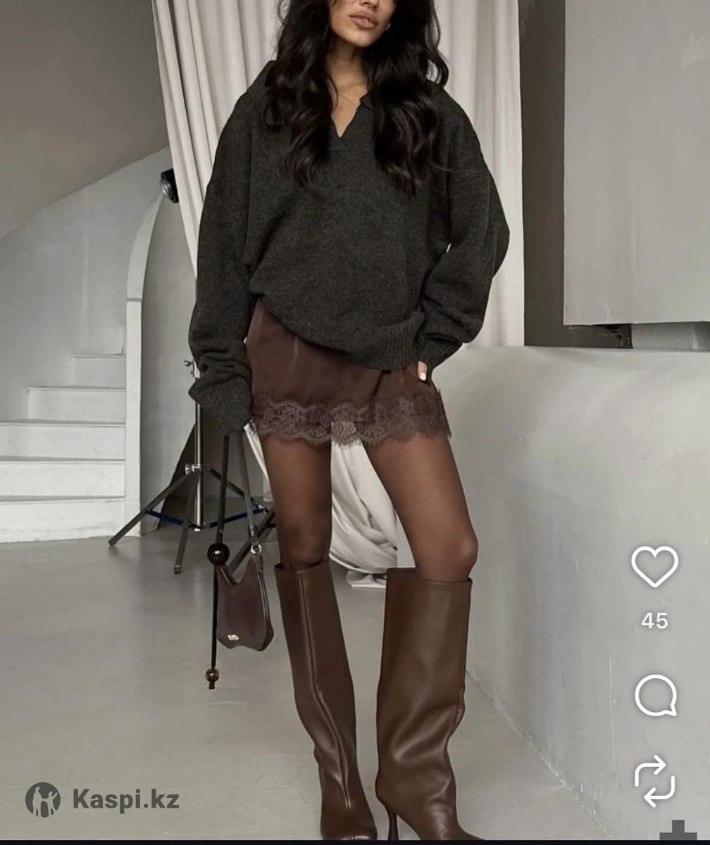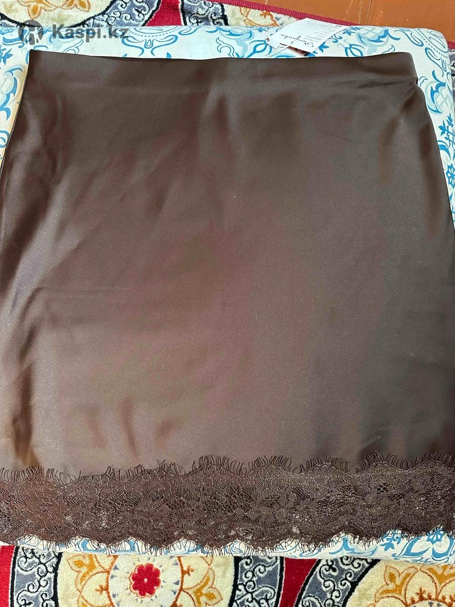 Юбка из нежного, струящегося атласа смотрится изысканно и утонченно. Низ юбки с кружевом. Отличная база для стильных образов. Достойно подчеркнет фигуру и добавит образу неотразимость. Базовый коричневый (шоколадный) цвет, новая с этикеткой. Размер S, цена 5500тг., без скидки, примерки и возврата. Звоните или пишите на .