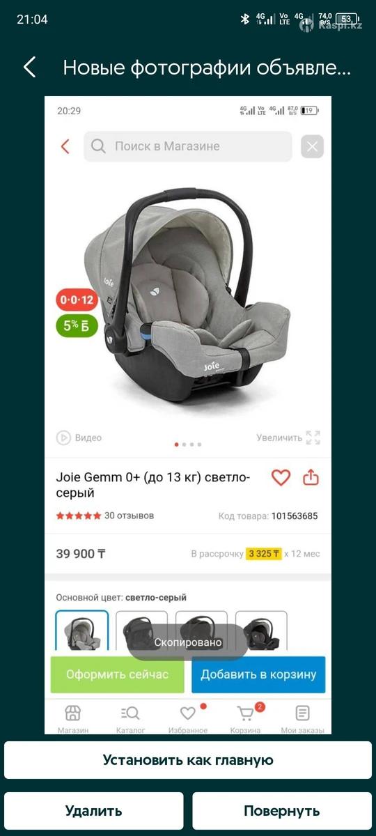 Автокресло Joie. чистое, целое, пользовались не часто. Есть вкладыш для грудничка.