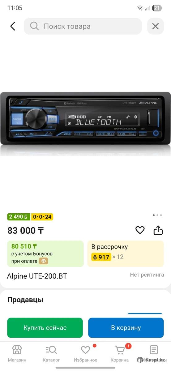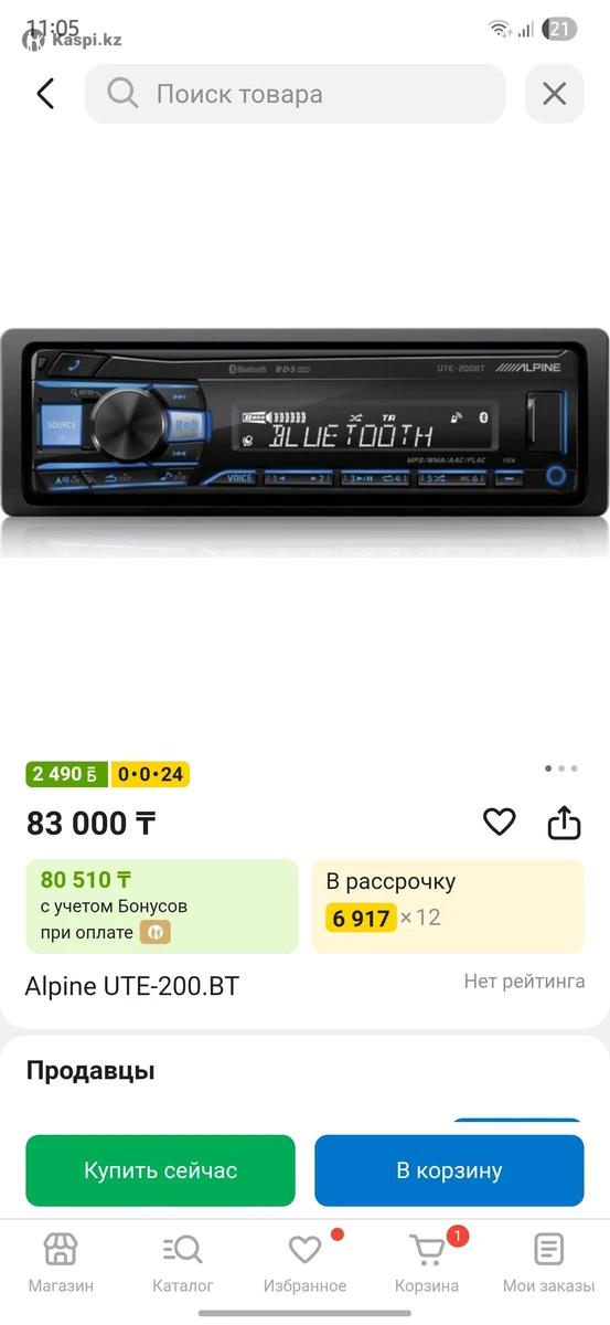 Автомагнитола Alpine UTE 200BT