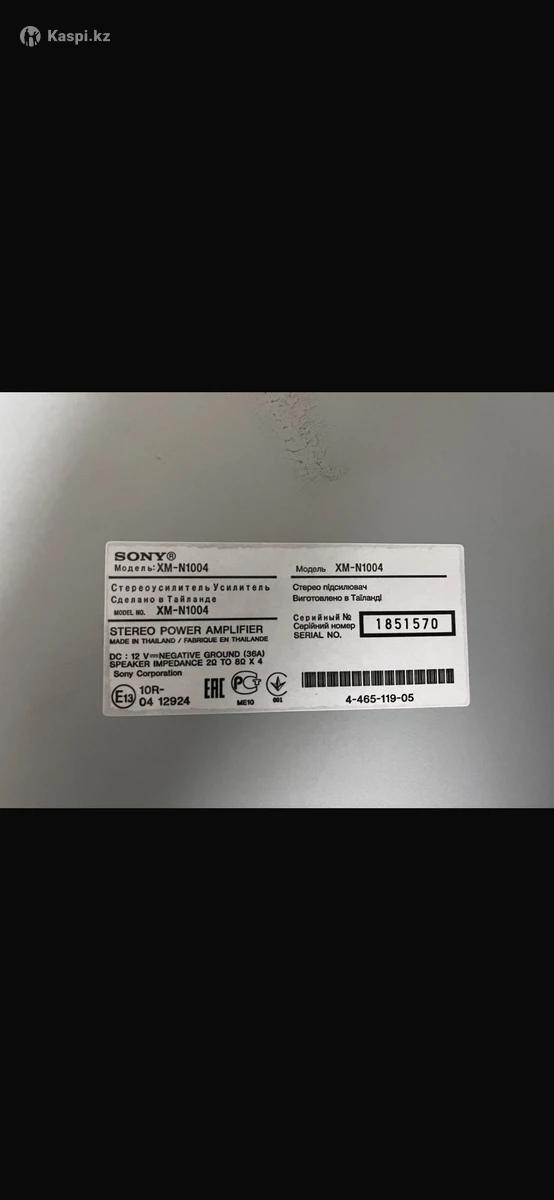 усилитель Sony XM-N1004 (1000W, 4-канальный) Продам надежный 4-канальный автомобильный усилитель Sony XM-N1004 в отличном состоянии. Мощный, чистый звук, подходит как для динамиков, так и для сабвуфера (есть мостовой режим). Характеристики: •Мощность: 70 Вт × 4 RMS / до 1000 Вт пиковая •Мостовой режим: 2 × 500 Вт — можно подключить саб •Сопротивление: 2–4 Ω •Фильтры: HPF / LPF (80 Гц) •Входы: RCA •Защита от перегрева (Thermal Control) •MOSFET-питание — стабильная работа и чистый звук Состояние: Усилитель полностью рабочий, не грелся, не ремонтировался. Корпус и клеммы в хорошем состоянии (см. фото). Без торга