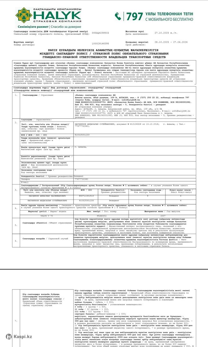 Автострахование онлайн (Халык, Евразия, Номад и др.)