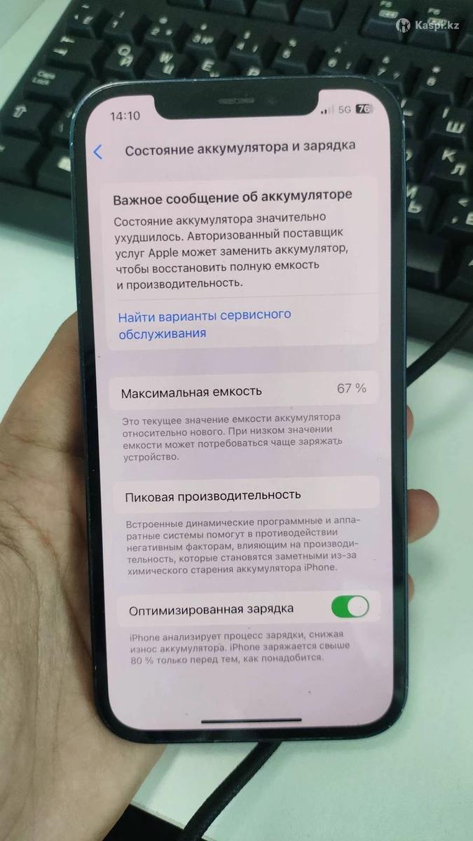 Айфон 12 Память 128 Ёмкость 67 Коробка бар 85.000тг Фейс трутон бар