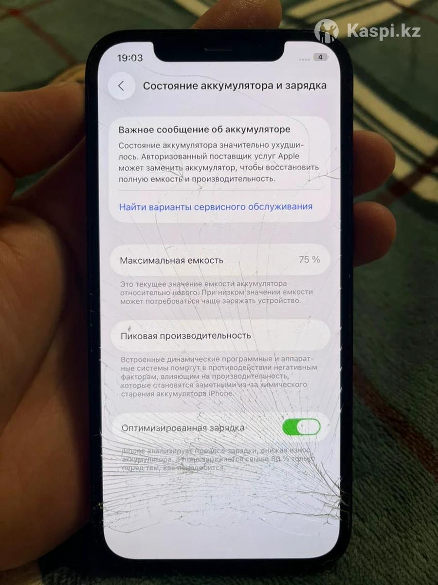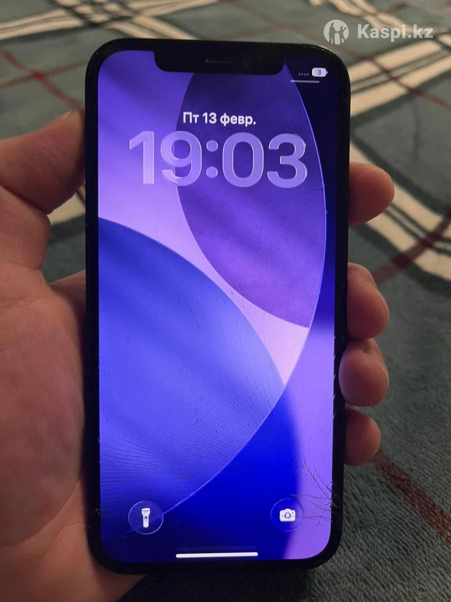 iPhone 12, 128 ГБ, черный | Face ID работает | На восстановление Продаю iPhone 12, 128 ГБ, черный цвет. Телефон включается, экран работает, Face ID работает. iCloud чистый, без блокировок. Требует ремонта: — Разбито переднее стекло — Разбита задняя крышка — Задняя камера не фокусируется — Не работает Wi-Fi — Не работает Bluetooth / AirDrop — Не работает режим модема Мобильная связь и передача данных работают. Аккумулятор — 75% Подойдет для восстановления или на запчасти. Цена: 65 000 тг, возможен торг.