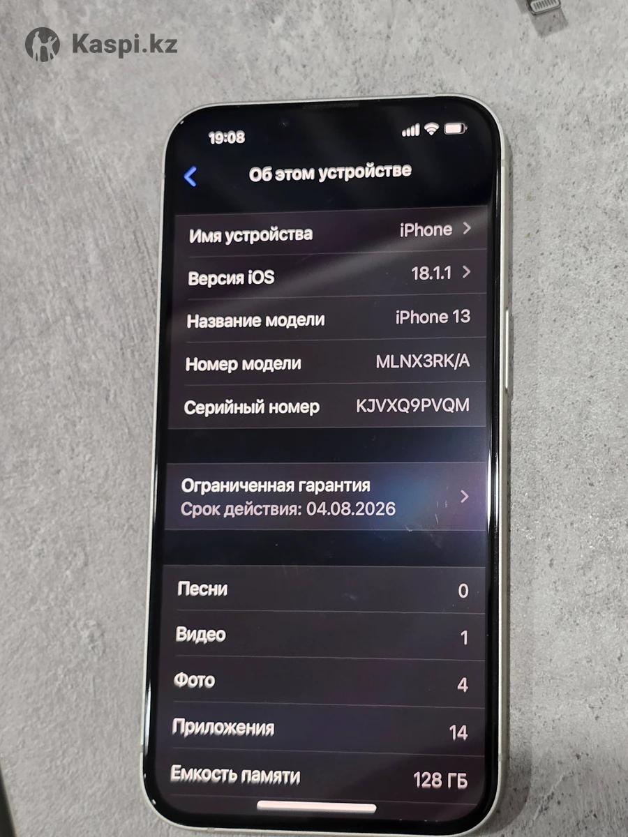 Продам свой Айфон 13 бел 128 г Емкость акб 94%на гарантии до 4 августа 2026г состояние идеальное ни единой царапины как новый все родное 100% коробка шнур все есть чехол в подарок в стиле 17 пишите торг есть Каспи РАСРОЧКА 00-12 00-24 БЕЗ Торга если каспи