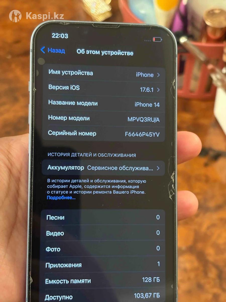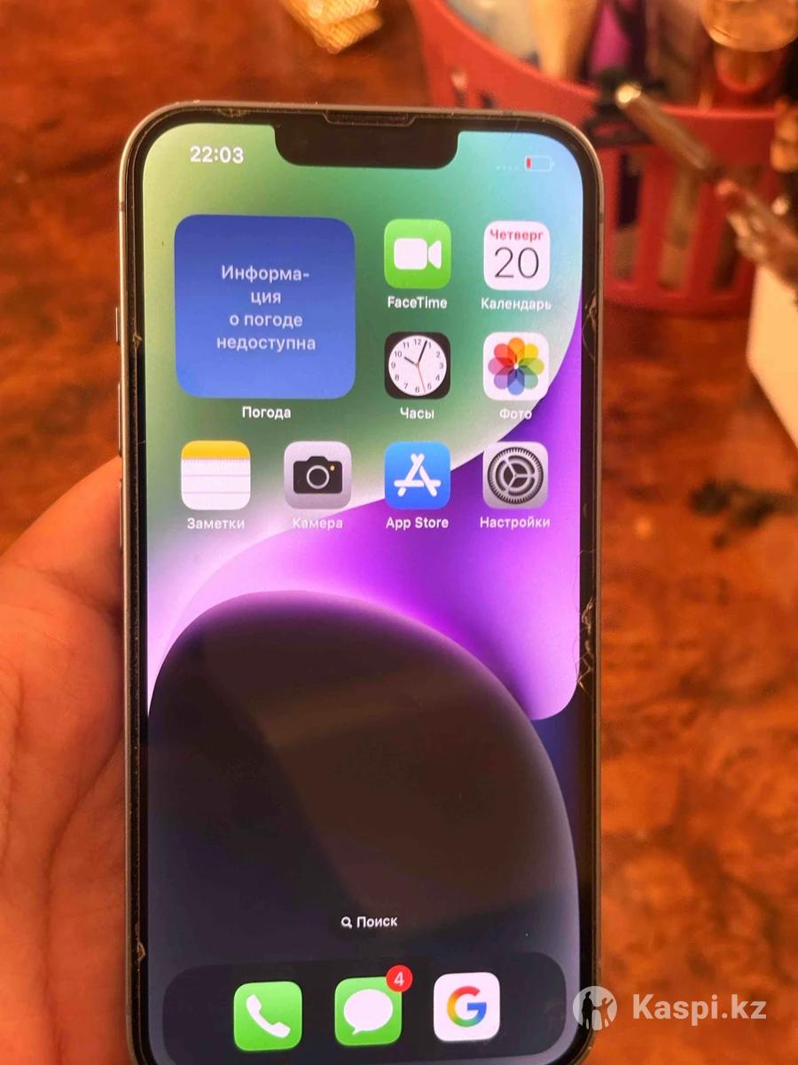 Продается iPhone 14 – Память: 128 ГБ – Батарея: 78% – Состояние хорошее, не тупит, не лагает – Пользовался(ась) 2 года, работает отлично – Есть только один минус — треснутая задняя крышка, на работу не влияет – Причина продажи: купил(а) новый телефон Kaspi Red есть Обмен не интересует Цена адекватная, торг уместен. Кто раньше — тому повезло!