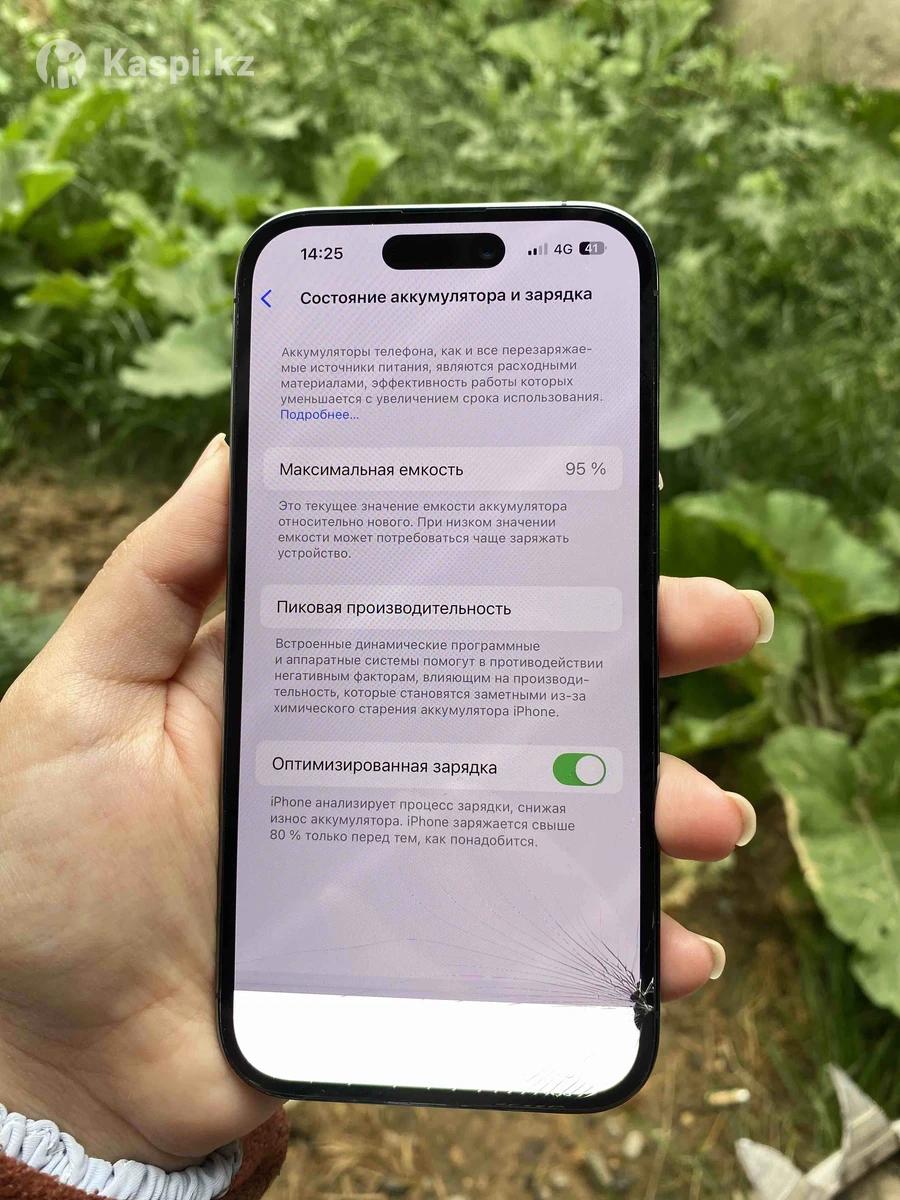 Продаю iPhone 14 Pro 128GB. •Состояние: рабочий, но экран поврежден (см. фото). •Батарея 95%, iCloud отвязан, Face ID работает,без коробки Цена: 180,000 тенге. +