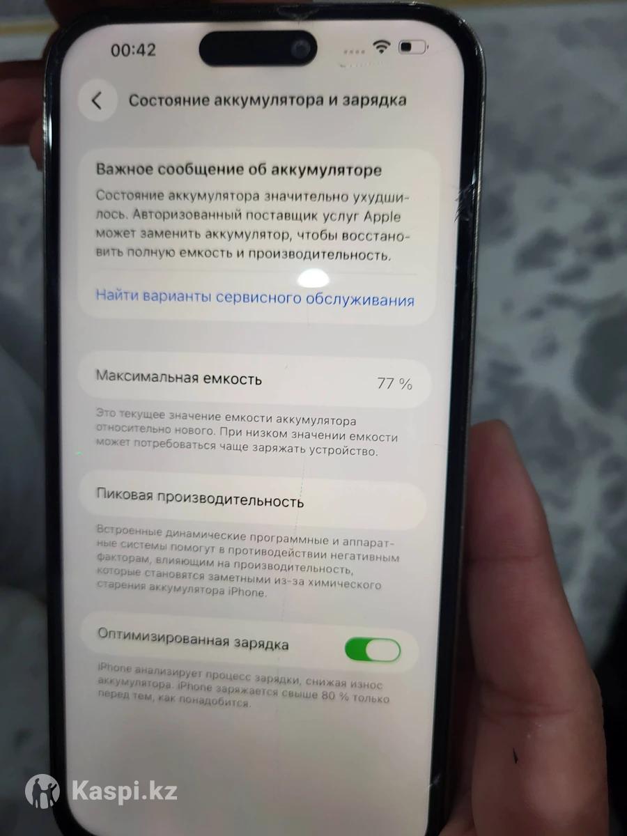 продаётся айфон 14 про max зарядка коробка все есть состояние хорошее, экран целый на экране ЗАЩИТНОЕ СТЕКЛО ёмкость 77 торг звонить и писать на