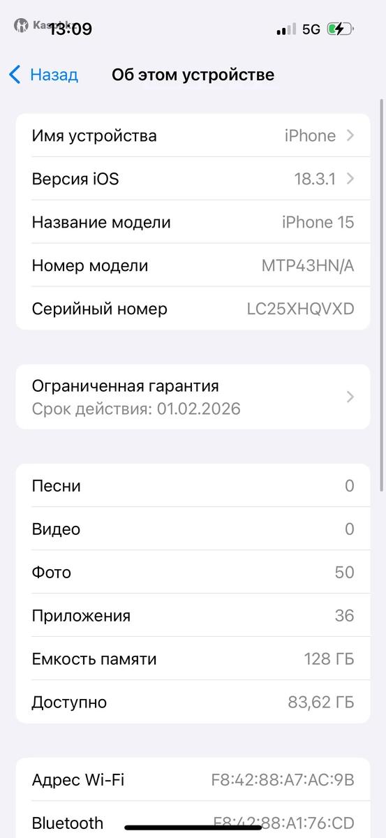 Айфон 15, с каробкой, емкость 92% , без никакой ремонта