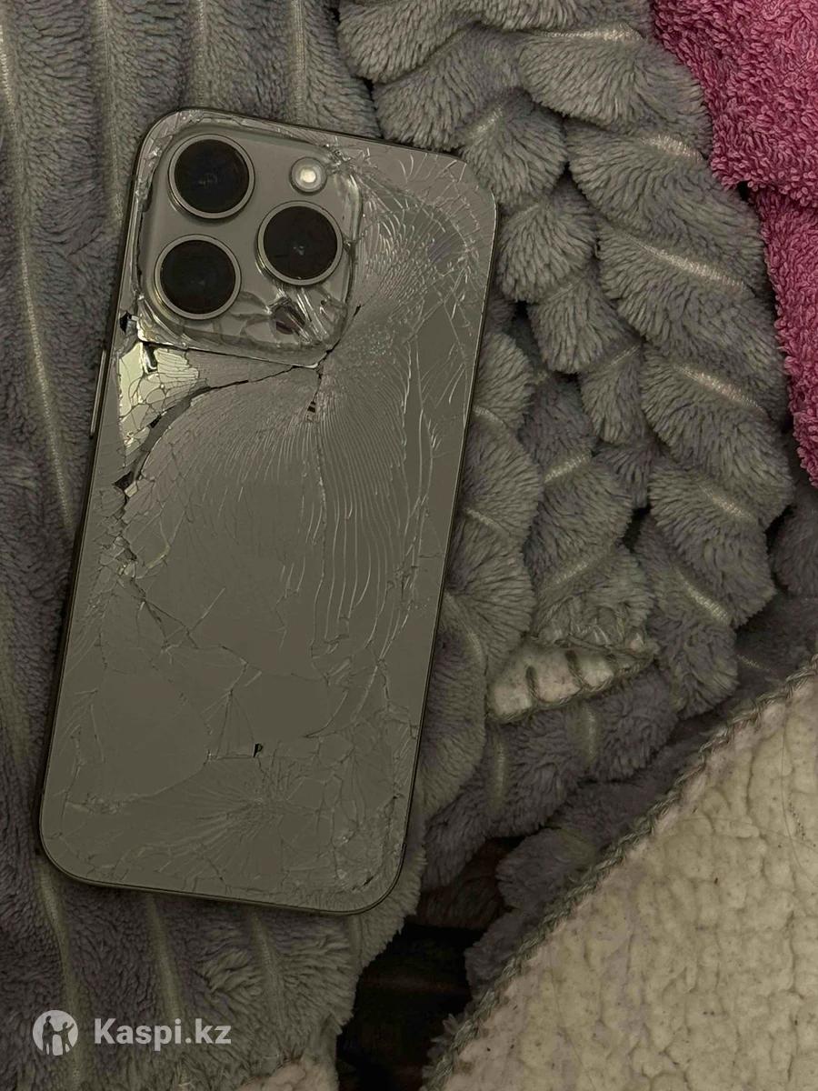 iPhone 15 Pro 128 GB •Face ID работает •экран разбит (мигает) •задняя крышка разбита •всё остальное работает •батарея 83%