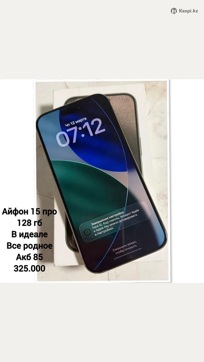 Айфон 15 про на 128 гб в идеальном состоянии.не вскрывался,ничего не менялось.акб 87%.документы,коробка и шнур в комплекте