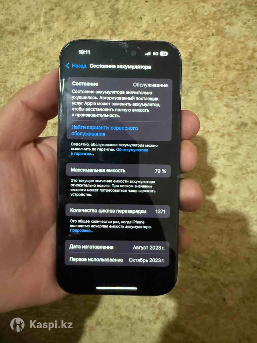15 про сатылады Жағдайы жақсы Бетіндегі стеклосында трещина бар болды басқа жерлері сау тап таза Ақауы жоқ Еш жері ремонтталмаған ашылмаған бәрі өзінікі Память 128 Емкость 79% Коробкасы жоқ