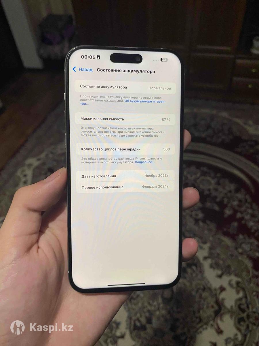 iPhone 15 PRO MAX память: 256ГБ Аккумулятор: 87% замен только экран Фейс айди трутон все работает Первый айклауд стоит, но можете смело пользоваться