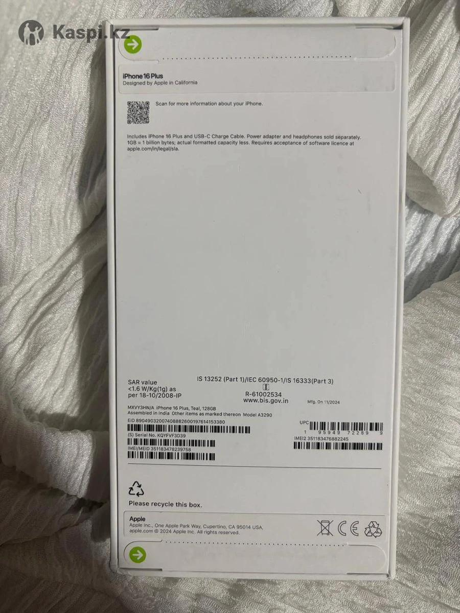 Айфон 16plus на 128гб Царапин и других дефектов нету АКБ не меняли и не вскрывали телефон АКБ 93%