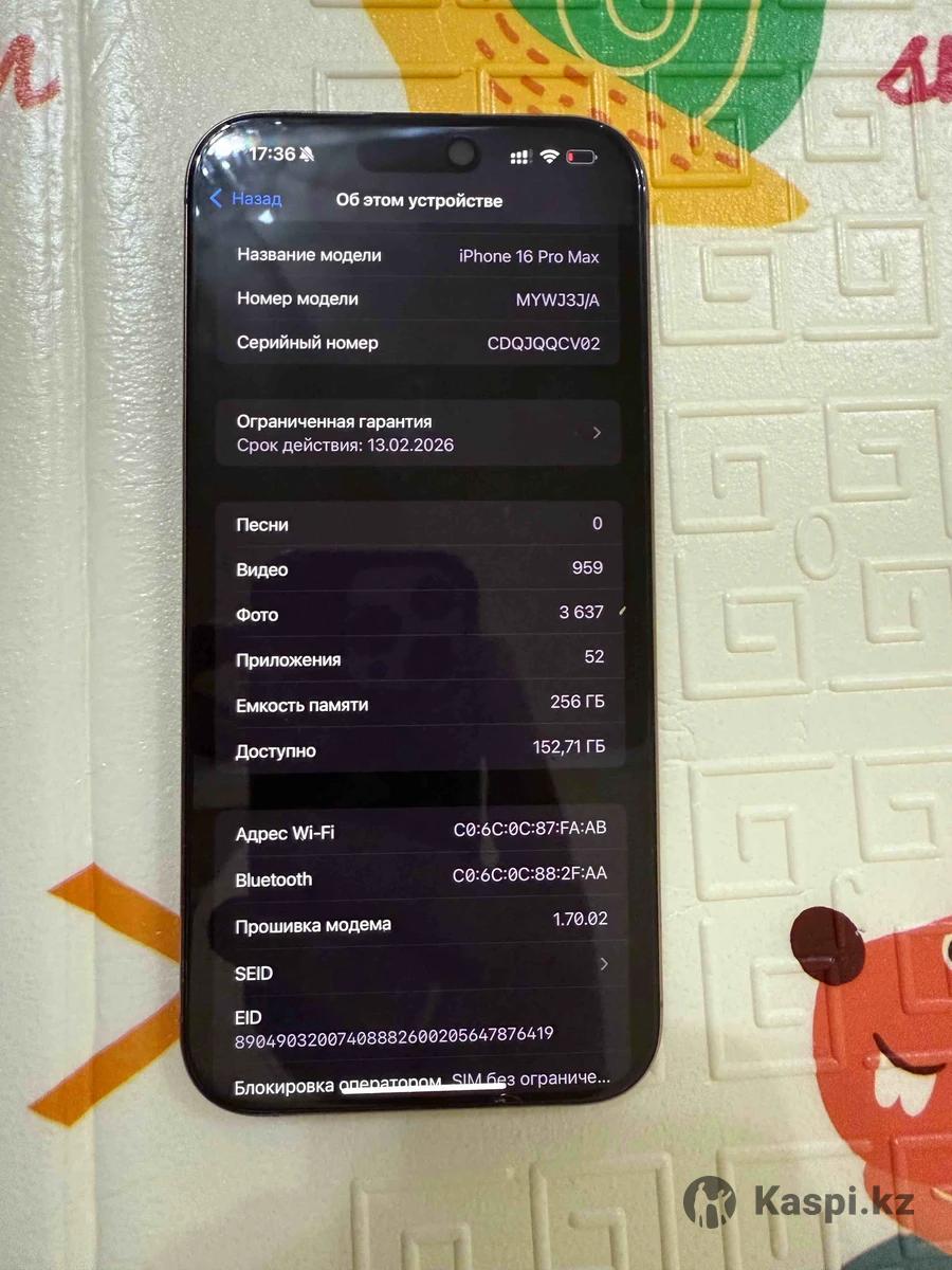 Айфон 16 про max 256 акб 100 коробка зарядка все есть царапины вообще нету