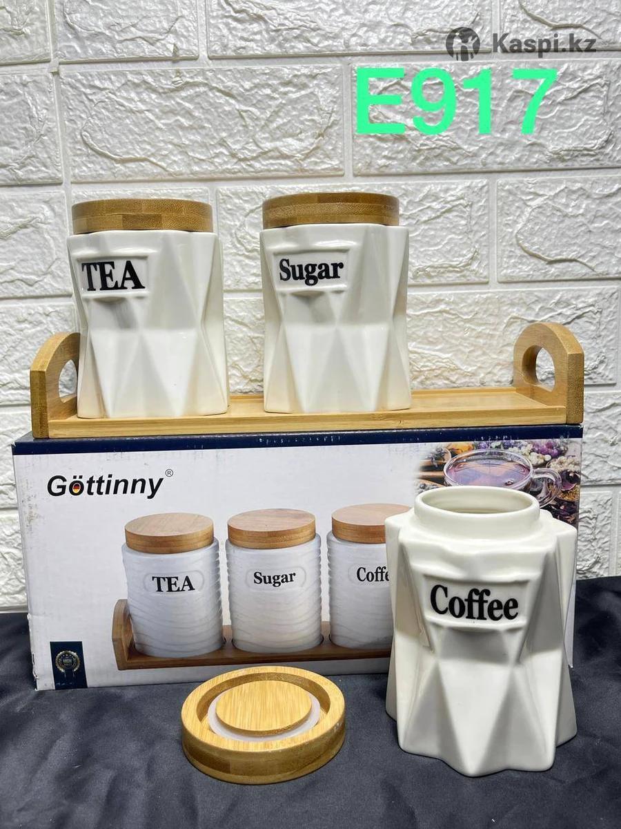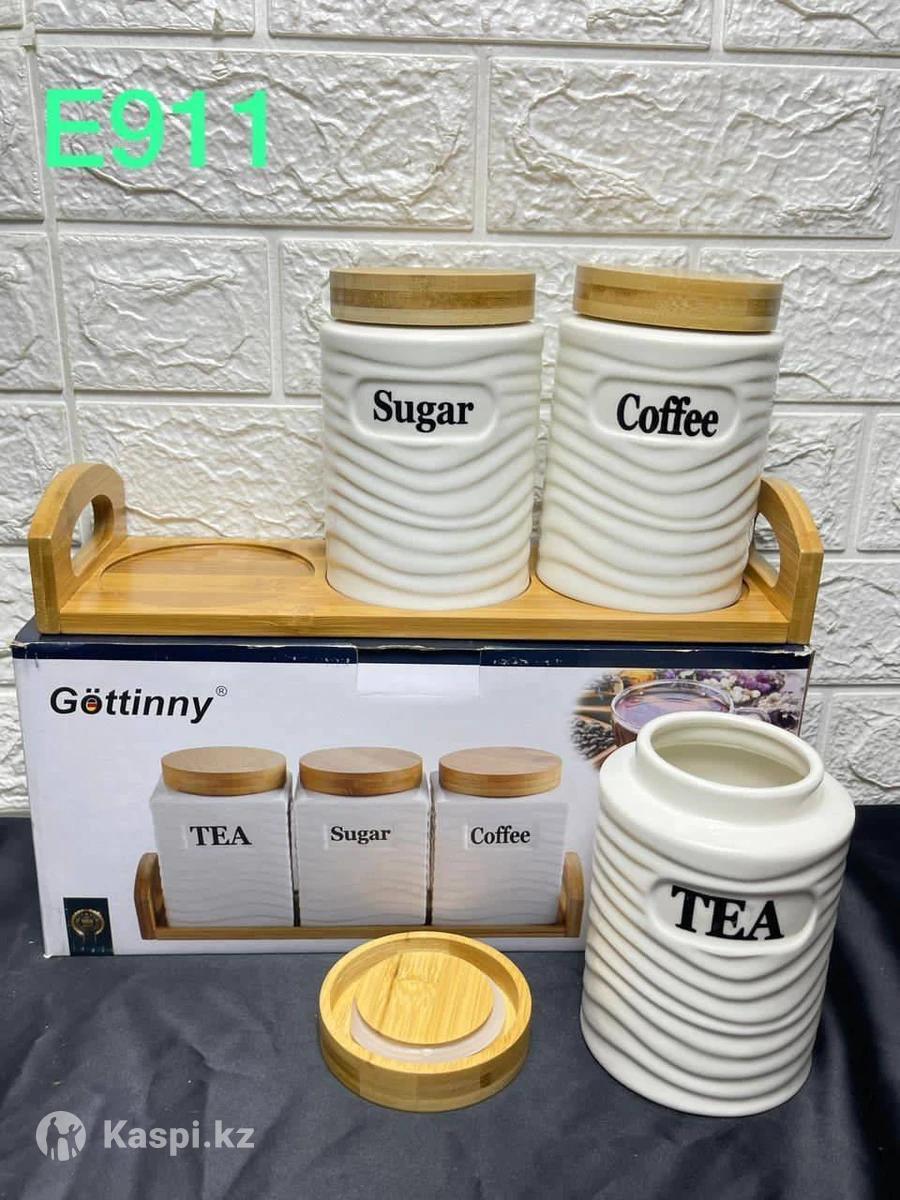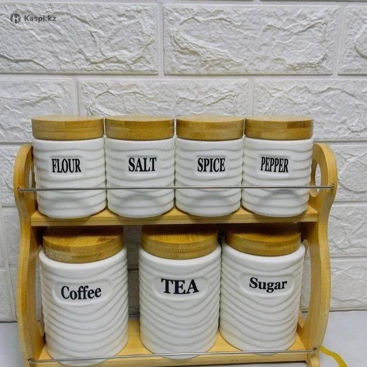 Наборы керамических банок с бамбуковой крышкой для сыпучих продуктов.