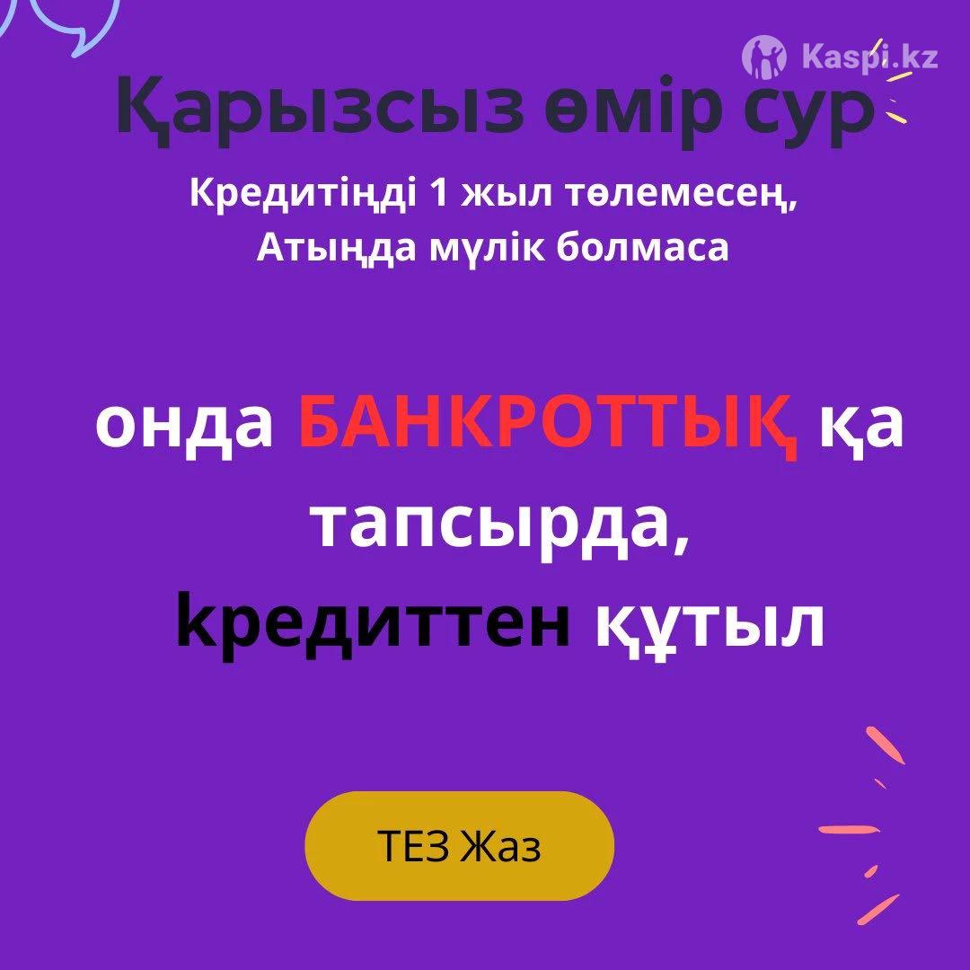 Банкроттыққа тапсырып беремін.15 жұмыс күнде жауабы шығады. 1жыл төленбеу керек барлық кредит машина үй көлік болмау керек үйленсеңіз жұбайыңыздада болмау керек. Сдача на банкроства за 15 дней