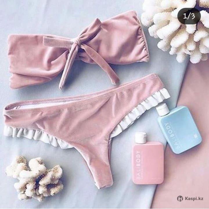 Бархатный купальник в нежно розовом цвете, с рюшами, новый, размер М (подойдет на с-м), со съемными чашками.