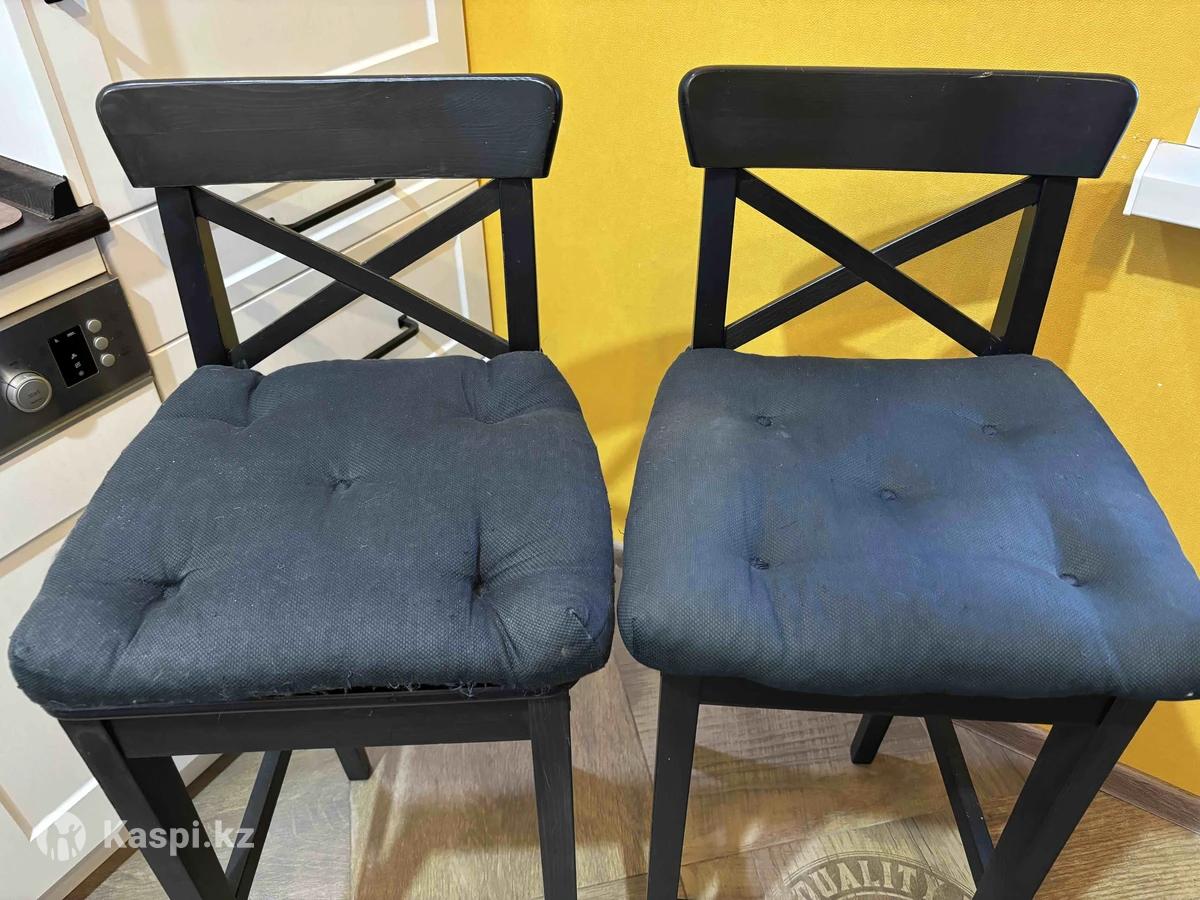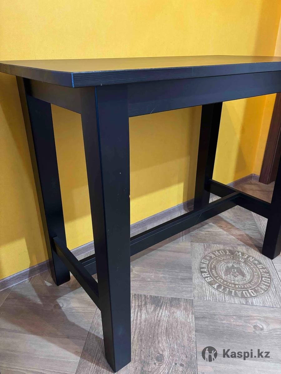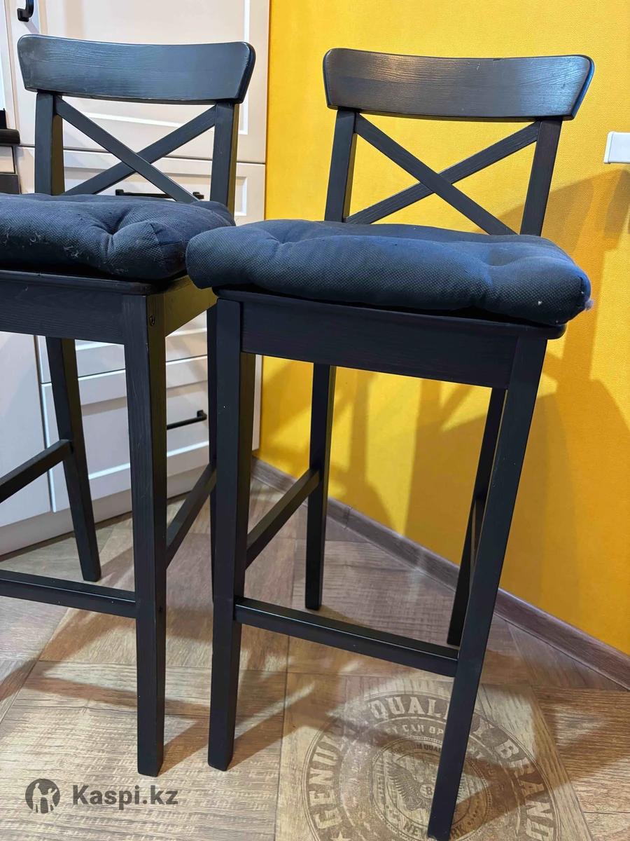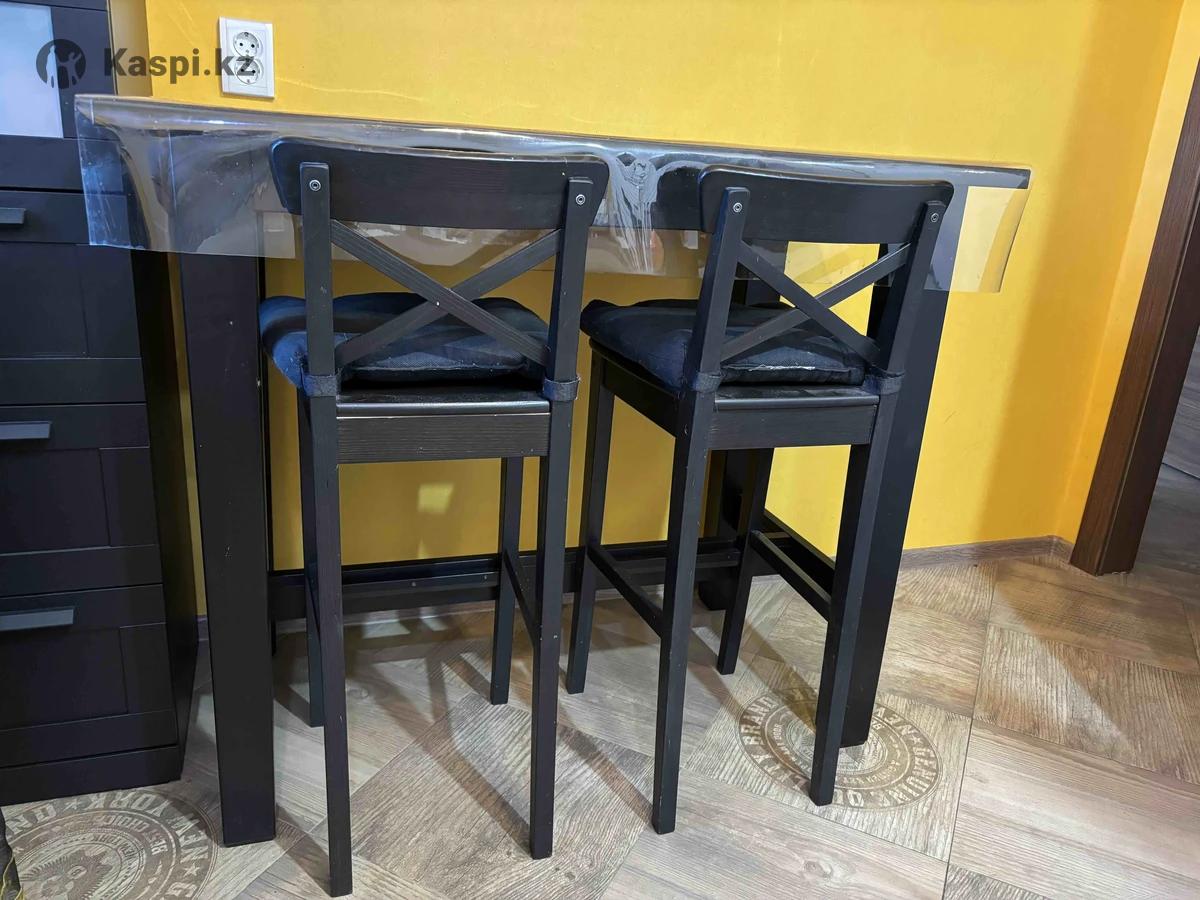 Продаю два барных стула Ikea Ingolf и высокий обеденный стол Ikea Stornäs (оригиналы) в хорошем состоянии. К стульям в подарок подушки-сидушки. Цена указана за весь комплект. Самовывоз из ЖК Ново Сити. Оплата только наличными или переводом на каспи, РБК, БЦК.