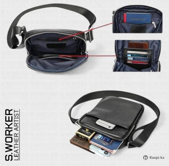 "🧲 Компактная сумка через плечо из натуральной телячьей кожи — уверенный стиль каждый день 👜 📍 Универсальный аксессуар для города и деловых встреч: аккуратный формат, продуманная организация и комфортная посадка на плече. ⭐ Главные преимущества 🧴 мужская барсетка из натуральной кожи — плотная телячья кожа с фактурой дольше сохраняет аккуратный вид 📏 компактная барсетка через плечо — удобные размеры 17×21,5×3 см, чтобы носить самое нужное без лишнего объёма 📁 удобная мужская сумка с отделениями — основное отделение на молнии и карманы для документов и мелочей 🔗 качественная кожаная барсетка — стильная металлическая фурнитура и надёжная сборка на каждый день 🎯 стильная кожаная сумка для документов и телефона — вещи под рукой, а образ выглядит собранно 💬 Ниже — детали, которые делают эту модель особенно удобной в ежедневном ритме. 🔎 Сумка держит форму благодаря плотной структуре, а мягкая подкладка бережно защищает содержимое при движении. Внутри предусмотрены карманы для телефона, паспорта и карт, а спереди есть внешний отсек для быстрого доступа к тому, что нужно чаще всего. Регулируемый ремень длиной до 152 см помогает настроить посадку под рост и стиль ношения. Эта модель легко вписывается в деловой гардероб и в повседневный городской образ: аккуратный чёрный цвет выглядит уместно и в офисе, и на прогулке. Если вам важны порядок и быстрый доступ к мелочам, барсетка для повседневного использования будет особенно удобна в дороге и на встречах. По функциональности это и универсальная мужская сумка из кожи, когда хочется взять только необходимое и сохранить опрятный вид. 🛍️ Выберите аксессуар, который подчёркивает вкус и помогает держать всё важное организованным. Подходит для города, офиса и деловых встреч. 🧼 Уход (RU) Чистка. Для ухода за кожаной сумкой протирайте поверхность мягкой сухой салфеткой, при необходимости — чуть влажной, затем насухо. Сильные растворители и жёсткие щётки не используйте; по смыслу чистка сумки из экокожи схожа, но для натуральной кожи лучше брать профильные средства. Сушка. Намокла — промокните тканью и сушите вдали от батарейка и солнца. Хранение. Эти же правила работают как уход за рюкзаком и правильное хранение рюкзака: сухое место, чехол от пыли, внутри бумага для формы. Фурнитура. Металл протирайте сухой тканью. Использование. Не перегружайте — так сохраняют долговечный рюкзак и аксессуары.