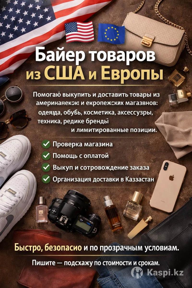 Помогаю выкупить и доставить любые товары из американских и европейских магазинов: одежда, обувь, косметика, аксессуары, техника, редкие бренды и лимитированные позиции. ✔️ Проверка магазина ✔️ Помощь с оплатой ✔️ Выкуп и сопровождение заказа ✔️ Организация доставки в Казахстан Быстро, безопасно и по прозрачным условиям. Пишите — подскажу по стоимости и срокам.