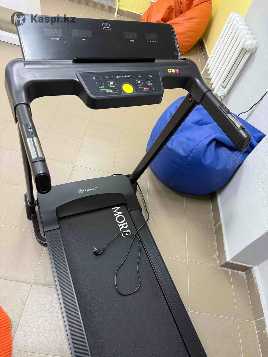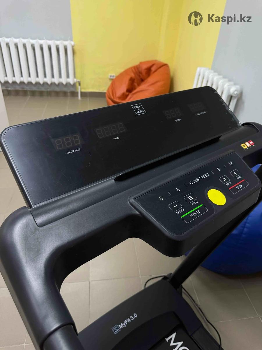 Пользовались всего 3/4 РАЗА! Новая можно сказать! В идеальном состоянии! Беговая дорожка MyFit 3.0 предназначена как для начинающих, так и тех, кто уже достиг определённых результатов в домашних тренировках. Длина и ширина полотна MyFit 3.0 делает его лидером в своей ценовой категории. ✦ 12 автоматических программ ✦ Опции: MP3, USB, Bluetooth колонки, приложение FitShow ✦ Встроенный держатель для планшета / смартфона ✦ Система амортизации: шок-абсорберы — 3S (Spring Suspension System) ✦ Система складывания: мягкое опускание ✦ Скорость: 0,8 – 12 км/ч ✦ Двигатель: 1,5 л.с. ✦ Размер бегового полотна (Д×Ш): 1200 × 450 мм ✦ Наклон бегового полотна: 3 уровня, ручной ✦ Транспортировочные ролики: есть ✦ Максимальный вес пользователя: 120 кг Беговая дорожка комплектуется электродвигателем мощностью 1,5 л.с., который обеспечивает отличную плавность хода, тишину и обладает увеличенным сроком службы. Максимальная скорость MyFit 3.0 — 12 км/ч, она рассчитана на ходьбу и бег. Мощности двигателя 1,5 л.с. достаточно для равномерного движения бегового полотна с любой скоростью и максимальной нагрузкой.