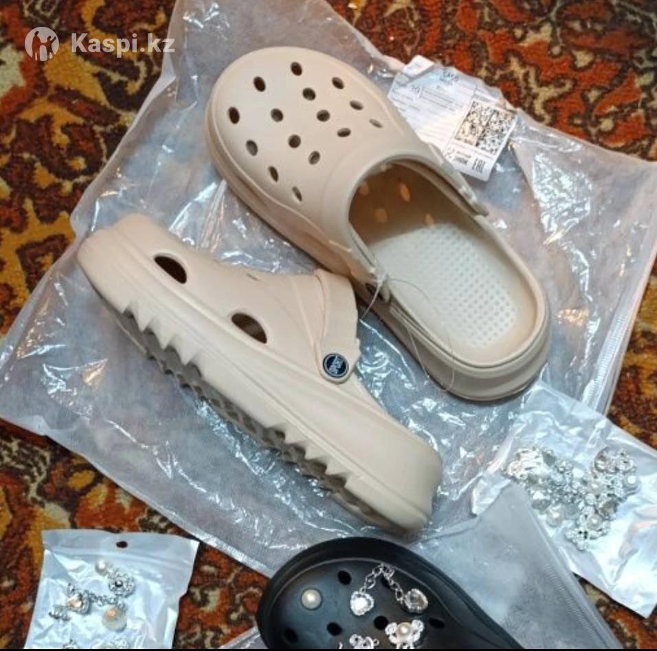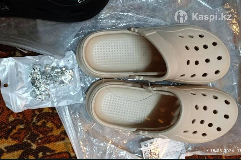 Бежевые тапки как кроксы с клипсами в наборе