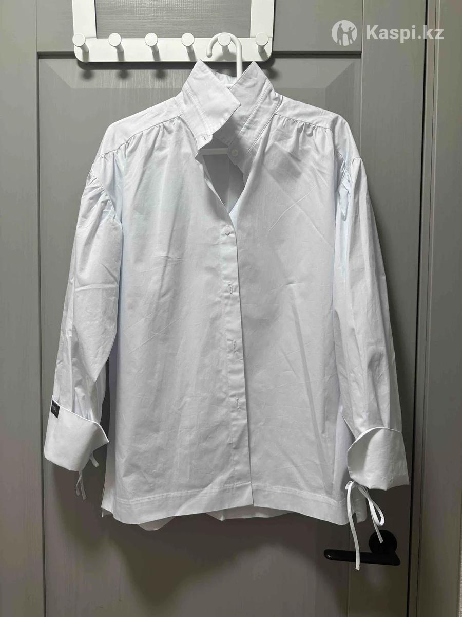 Белая рубашка, новая, рукава фонарики на завязках, oversize, производство Казахстан, jenil. Состав хлопок