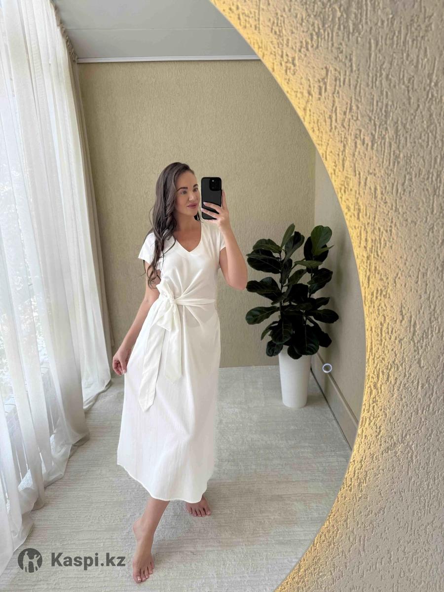 Легкое платье из хлопка, которое будет уместно в офисе, на свидании или прогулке у моря. Стильный крой с акцентом на талию делает образ женственным и собранным. 🤍 Материал: хлопок 📏 Размер стандарт — подходит от 46 до 48 💸 Цена: 12 000 тг