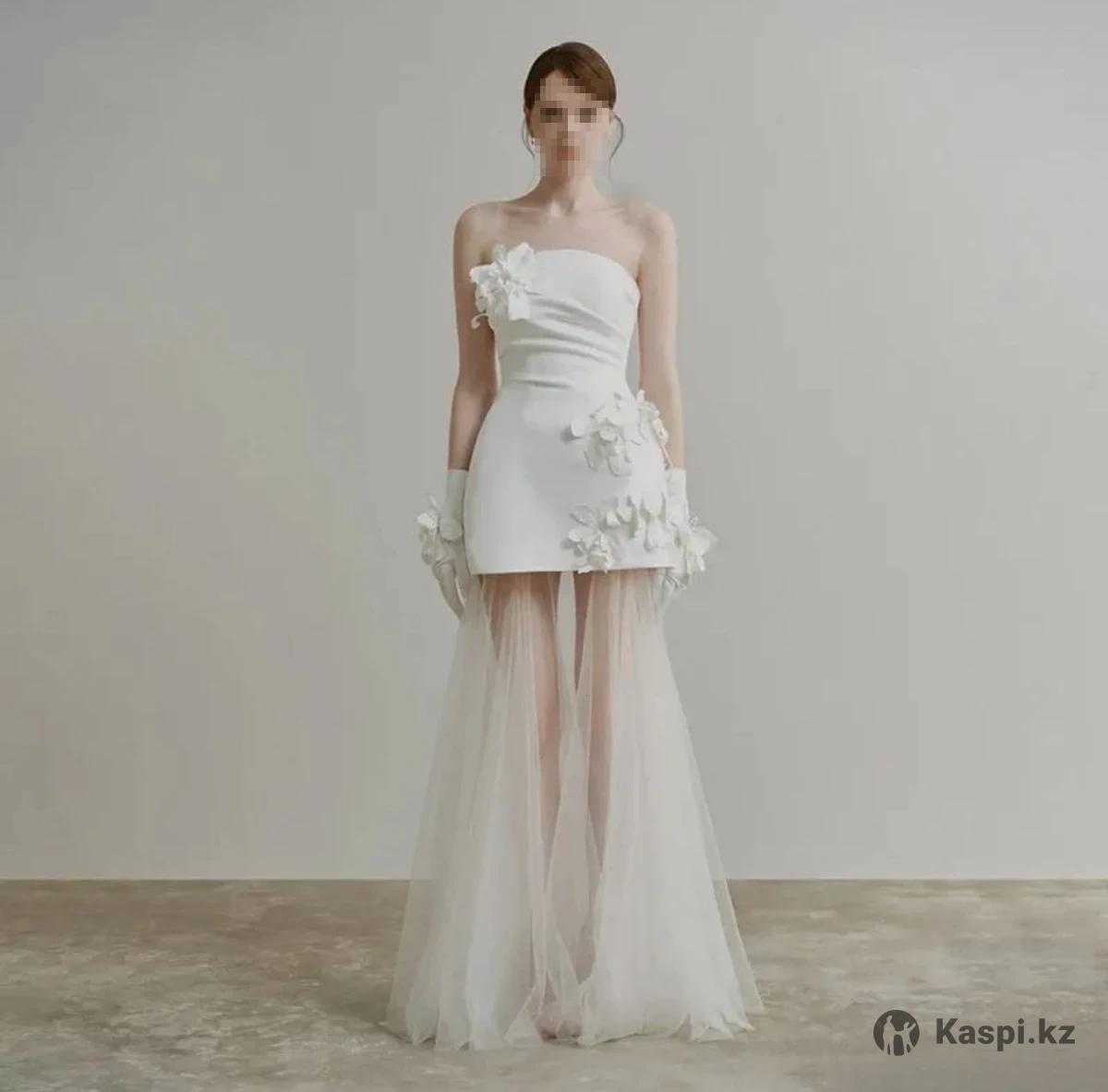 Элегантное свадебное / вечернее платье Нежное, утончённое платье, которое выглядит очень дорого и необычно. Идеально подойдёт для свадьбы, росписи или особенного вечера — Верх: корсетный, с шнуровкой сзади, можно регулировать посадку по груди — Талия: подходит на размер S/M — Низ: воздушная прозрачная юбка, создаёт эффект лёгкости и «вау»-силуэта Надевалось всего 1 раз Состояние отличное