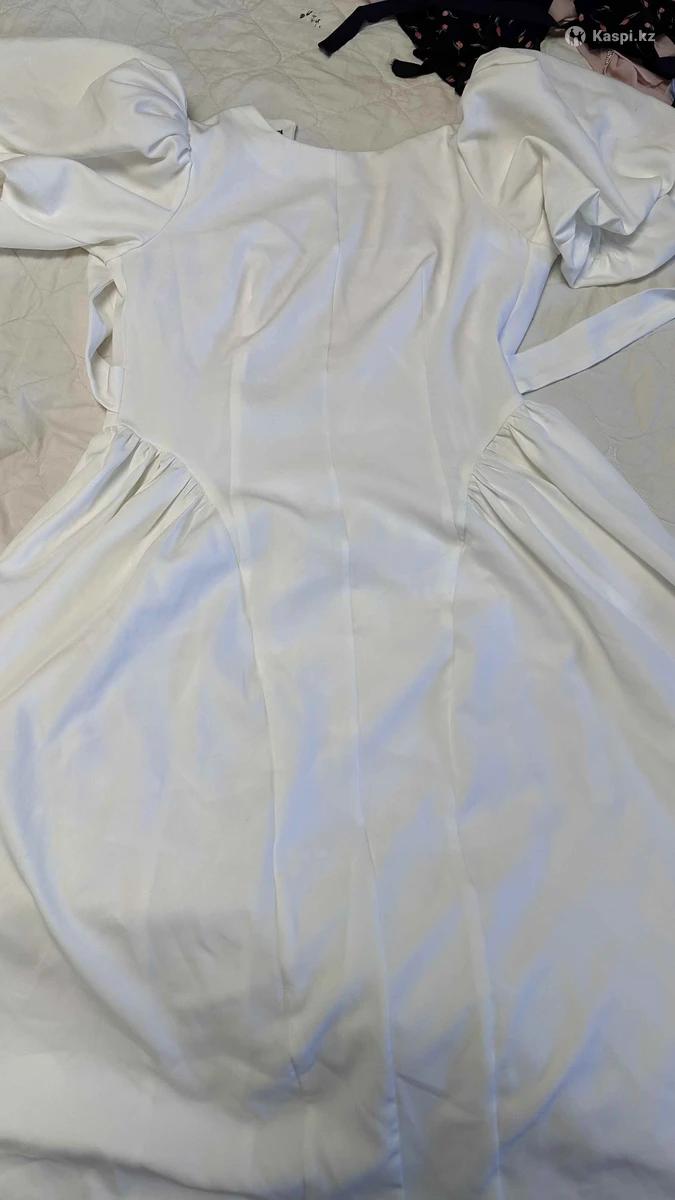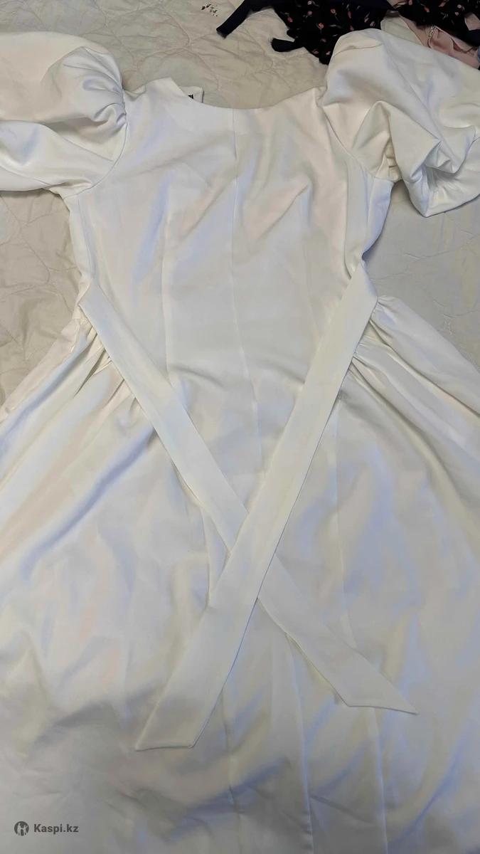 Белое платье миди с объёмными рукавами Очень нежное и женственное платье. Объёмные рукава, подчёркнутая талия, есть пояс. Длина миди, красиво держит форму. Смотрится как на последнем фото. Размер: стандарт (подойдёт на 44–46-48) Состояние отличное. Цена: 5000тг