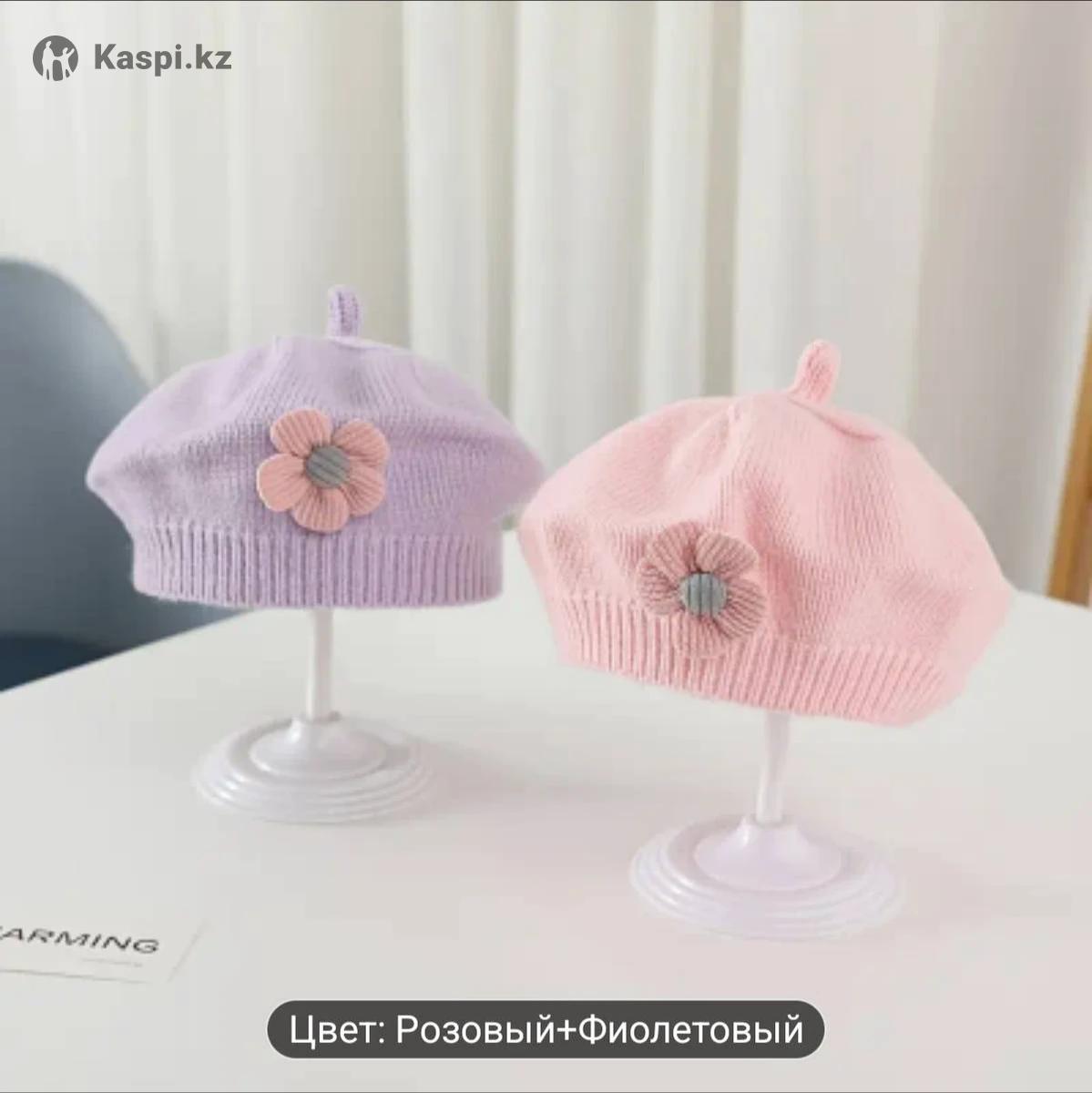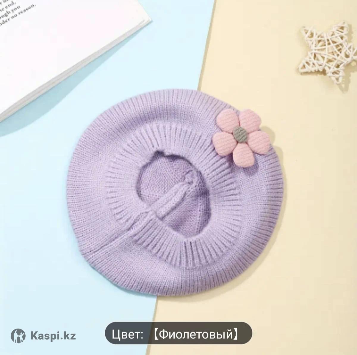 Детская беретка с цветочным узором. Мягкая эластичная вязаная шапка с пастельно-розовым и фиолетовым цветочным дизайном. Легкая, комфортная для повседневной носки и особых случаев. Идеально подходит для улицы. Ручная стирка или химчистка. Декоративный бантик