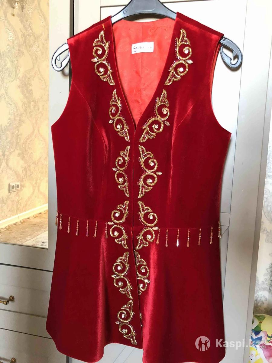 кажекей(белбеуімен) сатылады. 44 рр (М), ұзын бойлы қыздарға болады. Бір рет ұзату тойда киілген.