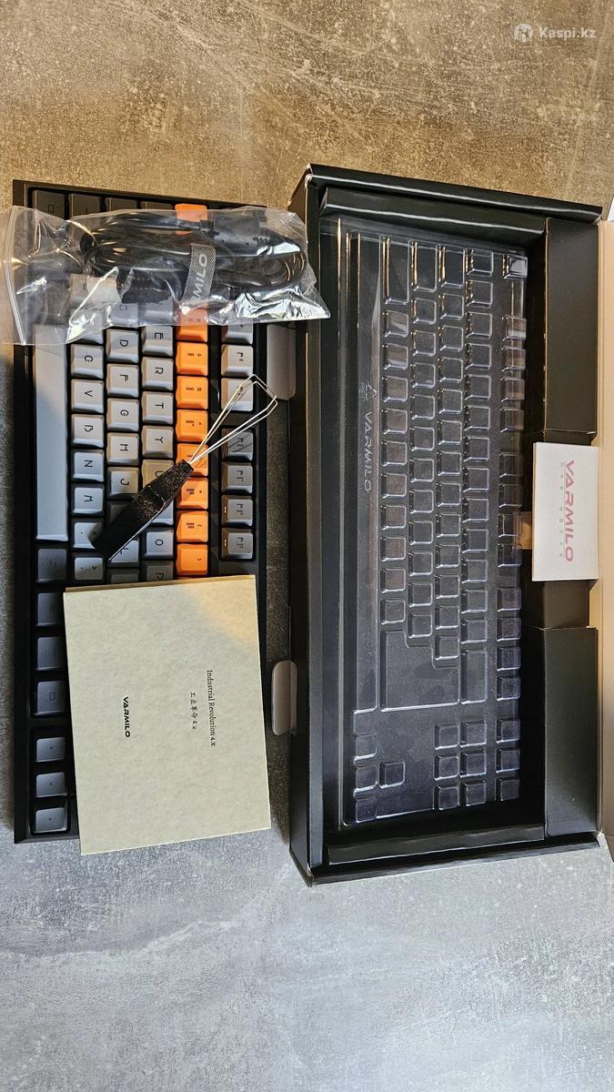 Беспроводная клавиатура от Varmilo, модель VCS87 Cliff Bot:Lie . Лимитированная версия в уникальном дизайне. Работает отлично и с Windows и с Mac(есть отдельный режим). Все клавиши работают исправно. Царапины, грязи или дефектов НЕТ! Полный комплект: коробка, провода с колпачками, донгл для беспроводной, крышка для клавиатуры и вся документация. Пользовался месяц. Могу в подарок дать большой ковер для мыши.