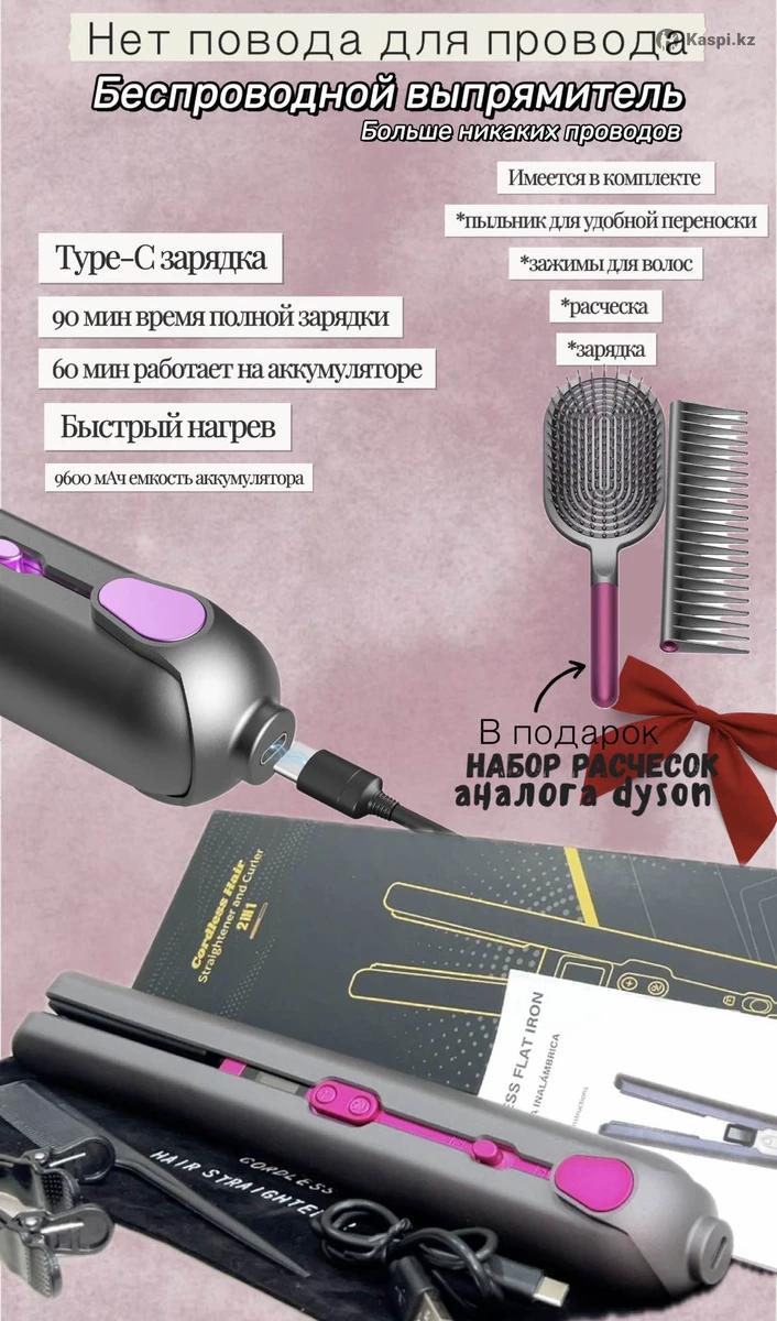 Продаю беспроводной выпрямитель В комплекте имеется сам выпрямитель можно делать и локоны,расческа,2 зажима,type-c шнур,пыльник можно возить с собой В подарок набор расчесок от аналога Дайсон