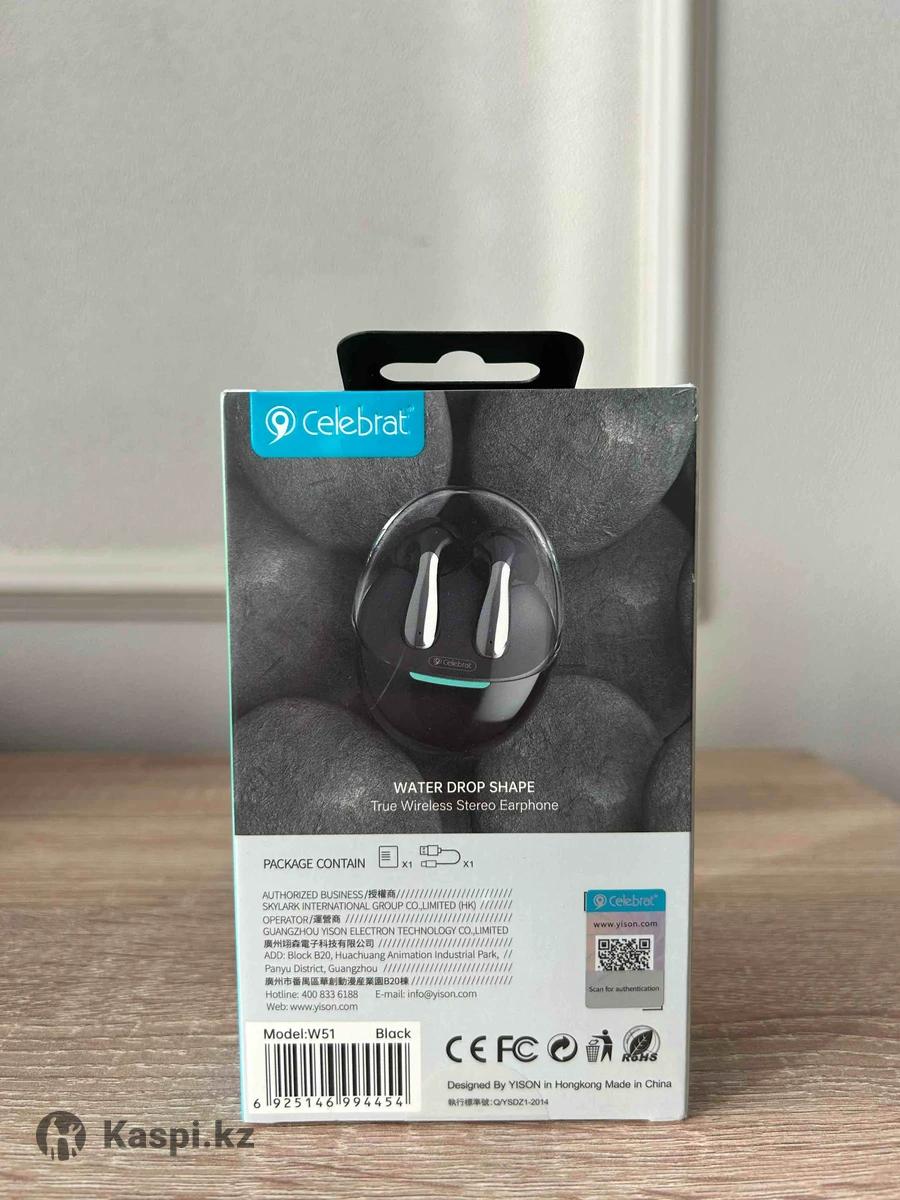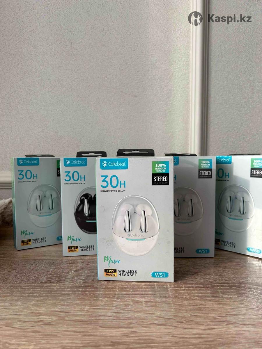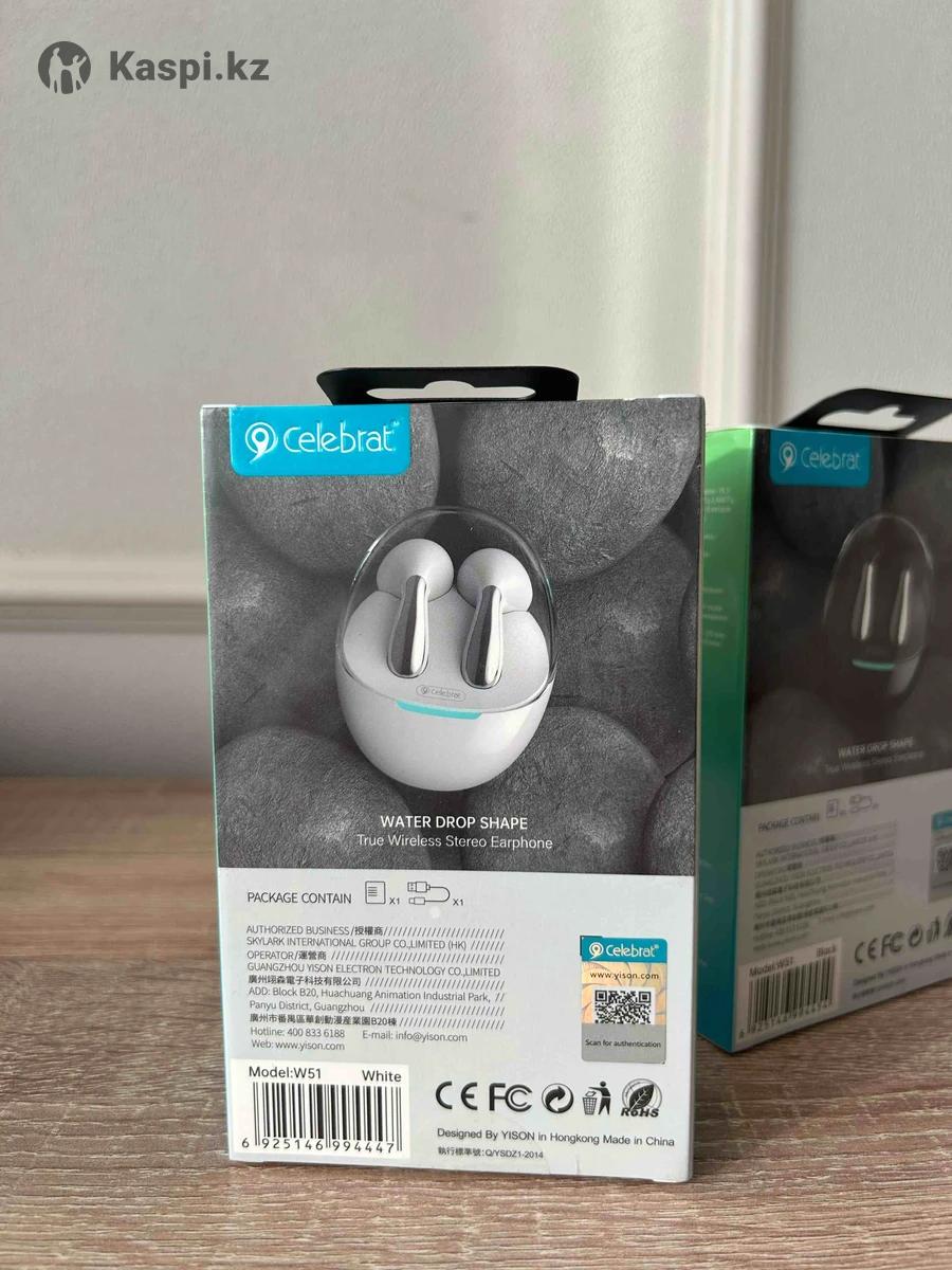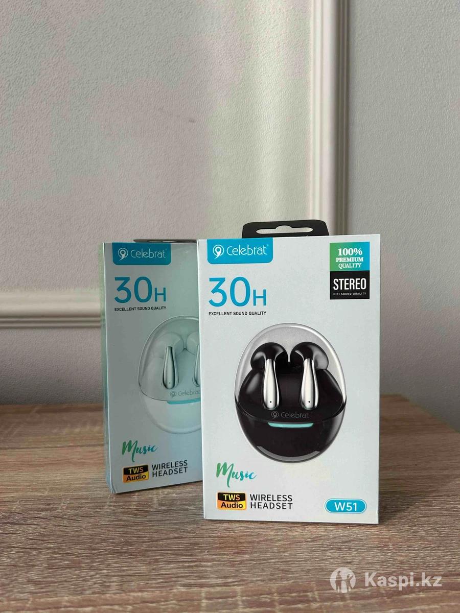 Беспроводные наушники Celebrat W51 Стильные и удобные TWS-наушники Celebrat W51 с качественным стерео-звуком. Отлично подходят для музыки, разговоров и повседневного использования. Характеристики: • До 30 часов работы с зарядным кейсом • Стерео звук (Hi-Fi) • Беспроводное подключение Bluetooth • Удобная посадка в ушах • Сенсорное управление • Компактный зарядный кейс Состояние: новые, в коробке.
