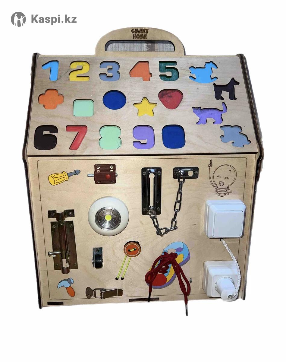 Бизидом (бизиборд) Большой, с доской для рисования "Натуральный". Развивающая игрушка по методике Монтессори, детали ручной работы. Размер . Из недостатков: не хватает физор «7,8,9» Состояние 8/10 (на фото указаны) Цена 15’000 тг (за пол цены отдаю) Забирать с Саина Юрия Кима