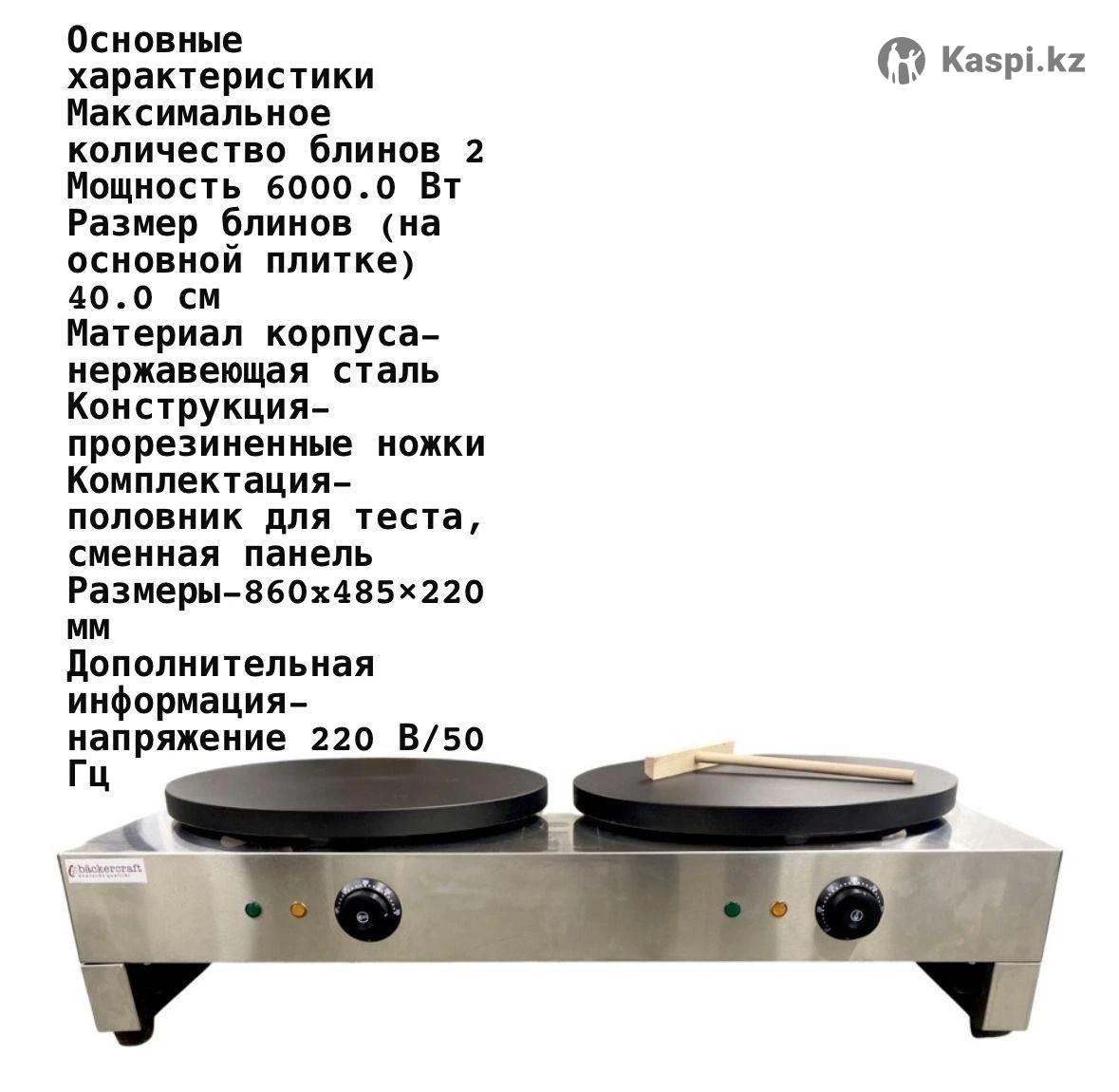 Основные характеристики Максимальное количество блинов 2 Мощность 6000.0 Вт Размер блинов (на основной плитке) 40.0 CM Материал корпуса-нержавеющая сталь Конструкция-прорезиненные ножки Комплектация-половник для теста, сменная панель Размеры-860х485×220 MM Дополнительная информация-напряжение 220 В/50 Гц Б.у