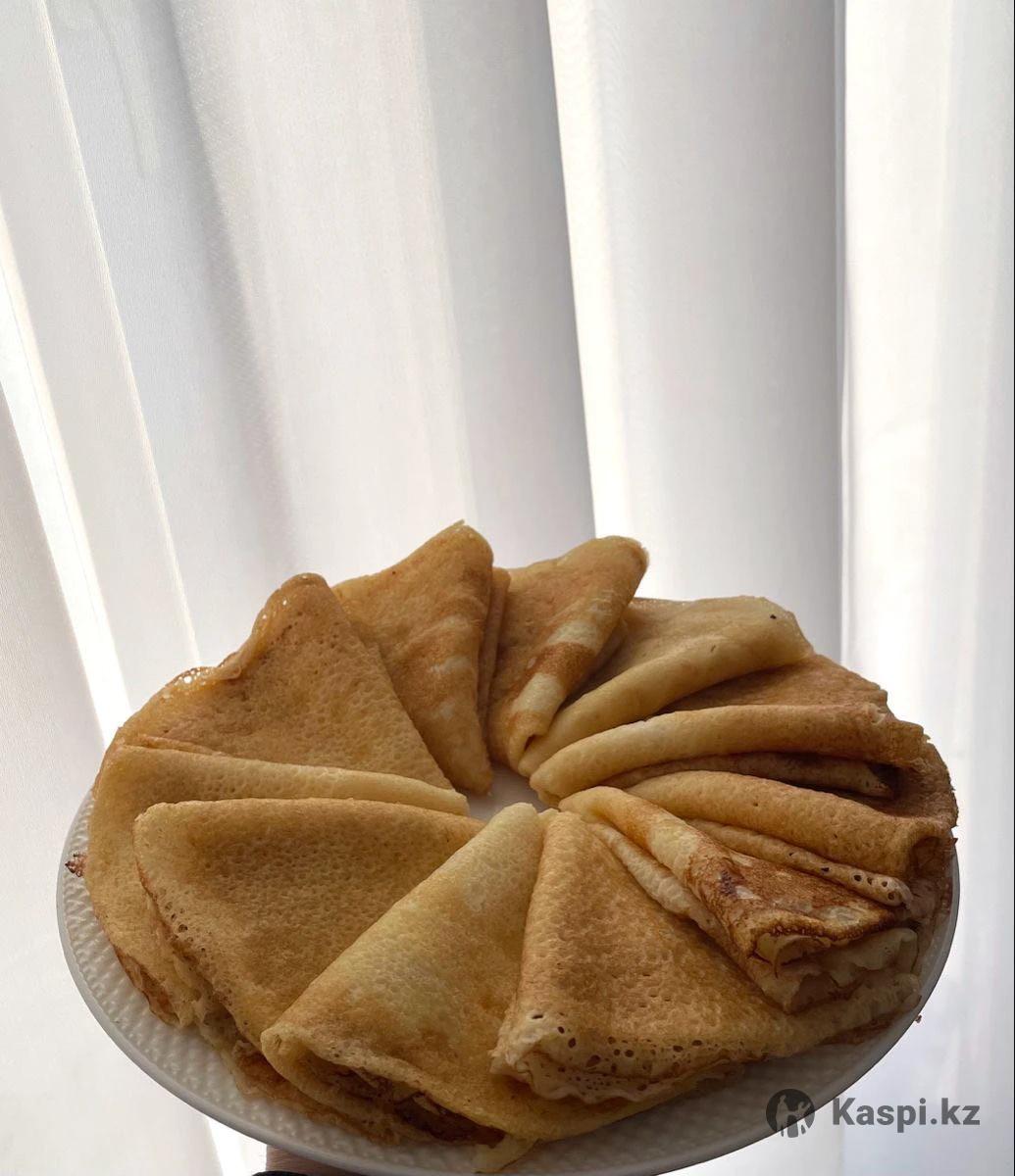 Ажурные блины, блинный торт и блинные роллы 🥞 Описание: Готовлю домашние ажурные блины из свежих продуктов. Вкусные, нежные и красивые — подойдут для завтрака, гостей и праздников. Цена 1 шт - 100 тг Также принимаю заказы на: •Блинный торт •Блинные роллы Заказы принимаю за 1 день заранее Возможен экспресс-заказ в день обращения