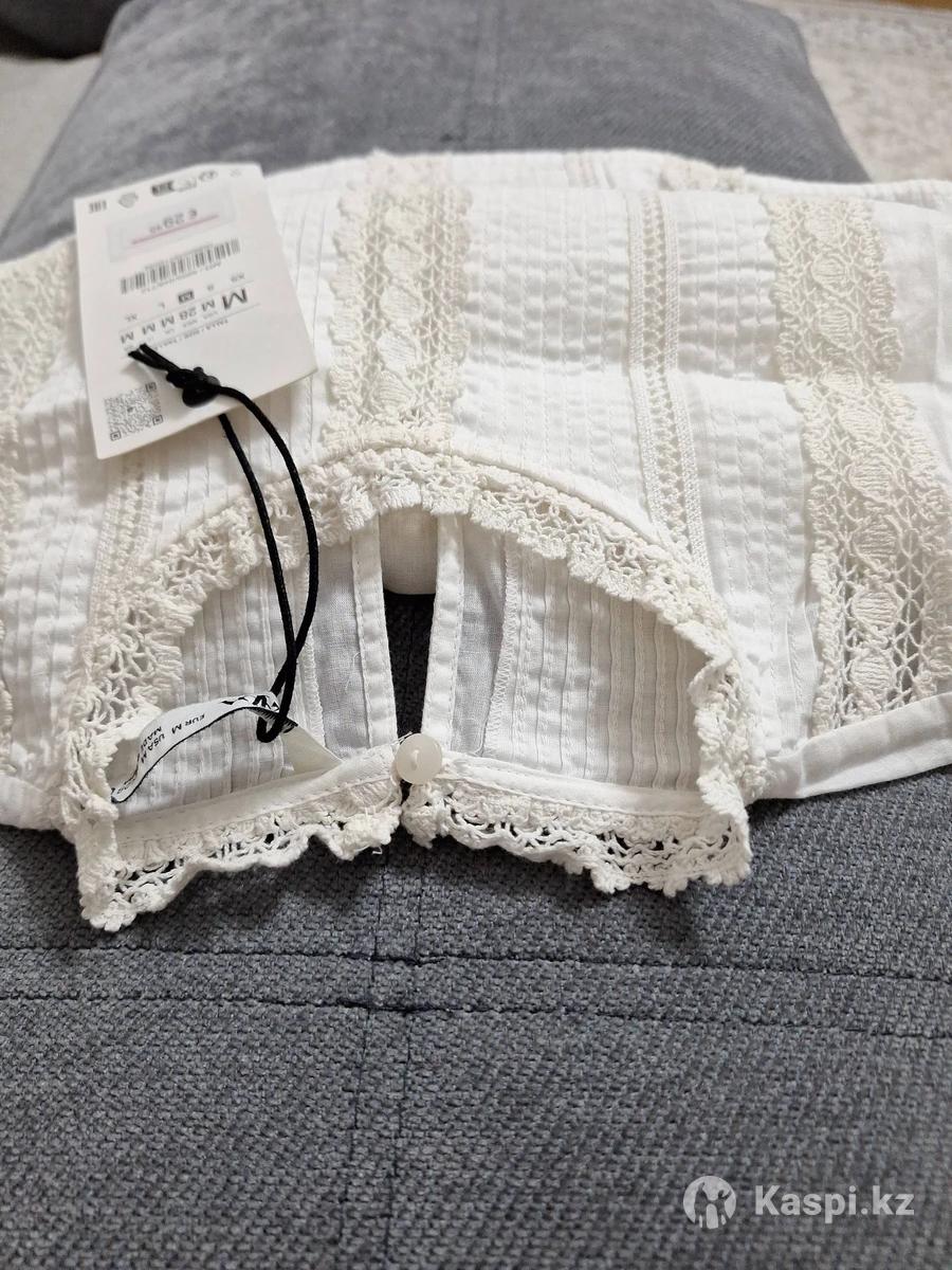 Нежная х/б блузка размер М, фирма ZARA. Одежда из Европы. Нежная обшивка тесьмой.