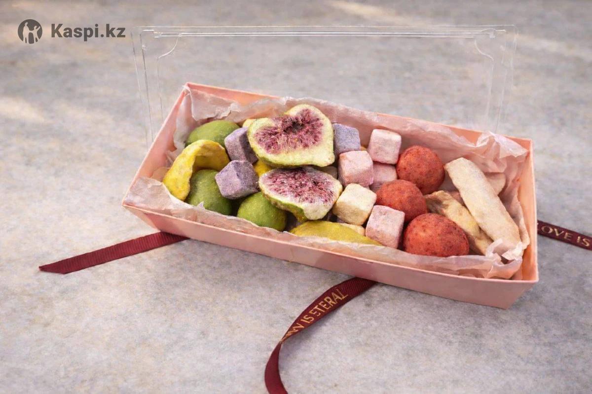 Бокс из сублимированных фруктов и йогуртов. Входит: персик, джекфрут, груша, сублимированные йогурты 3х видов, клубника в шоколаде со вкусом матчи и клубника в красном шоколаде. Очень вкусные и идеально подходят для подарка Цена 3000 тенге