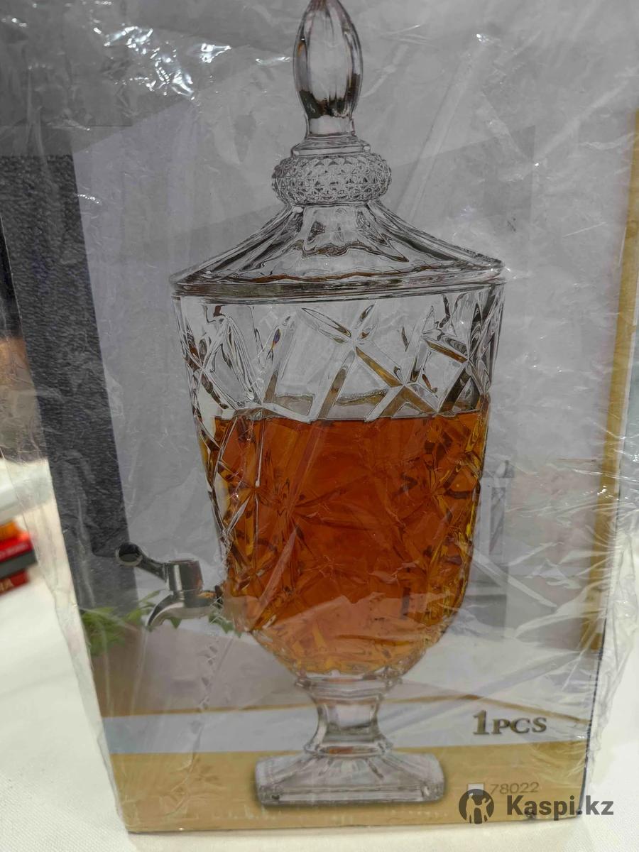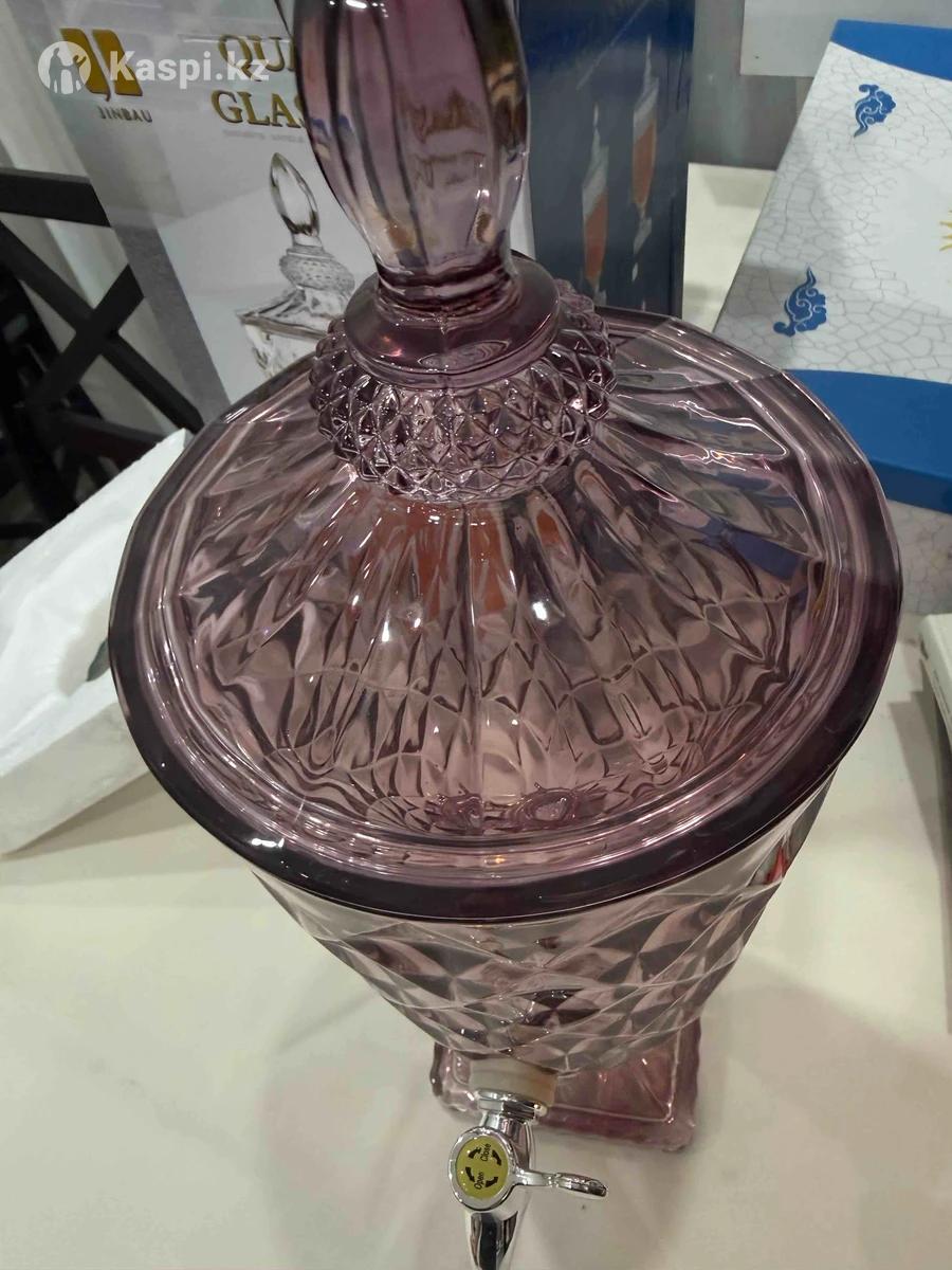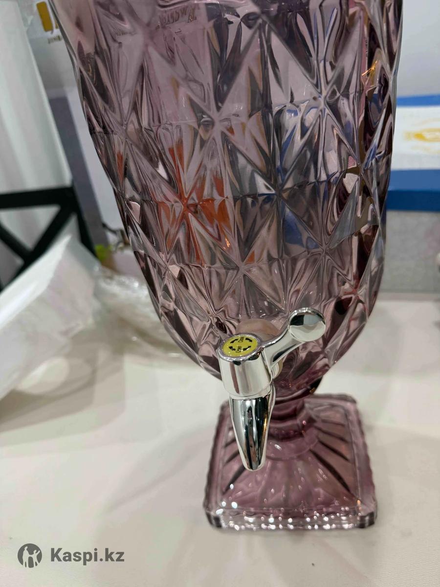 Стеклянный кувшин с экраном для разлива разных напитков. Удобно поставить на стол и с большим объемом разливать по стаканам. Прочное стекло , качественный кран и устойчивая подножка. Цвет бордовый ближе к сливовый. Новый кувшин , в упаковке с коробкой.