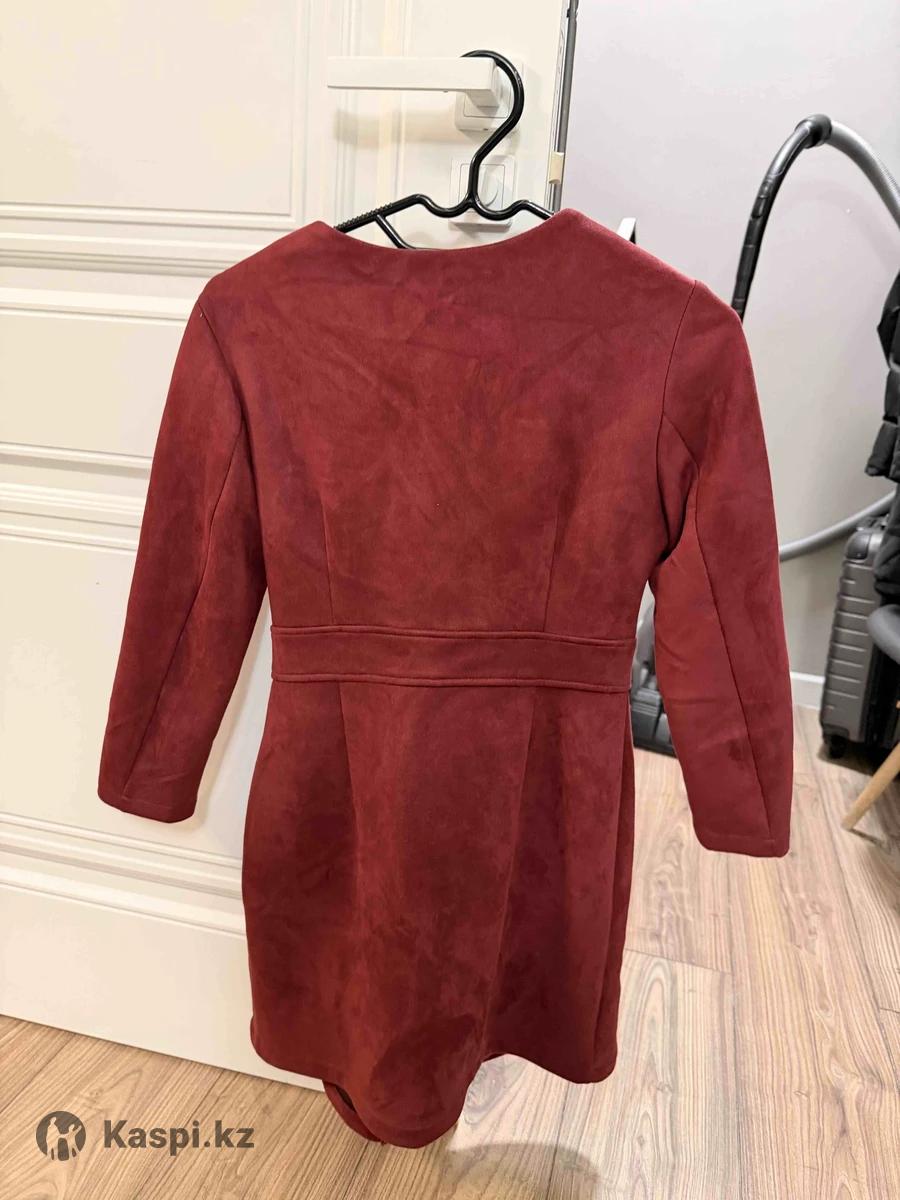 Элегантное платье бордового цвета с эффектом запаха и акцентной пуговицей на талии. Приталенный силуэт, длина выше колена, рукав три четверти. Подчеркивает фигуру, подойдет для мероприятий и ужинов. Состояние отличное. размер S