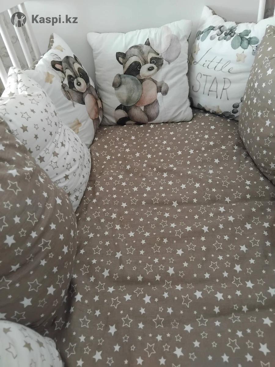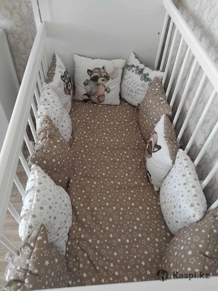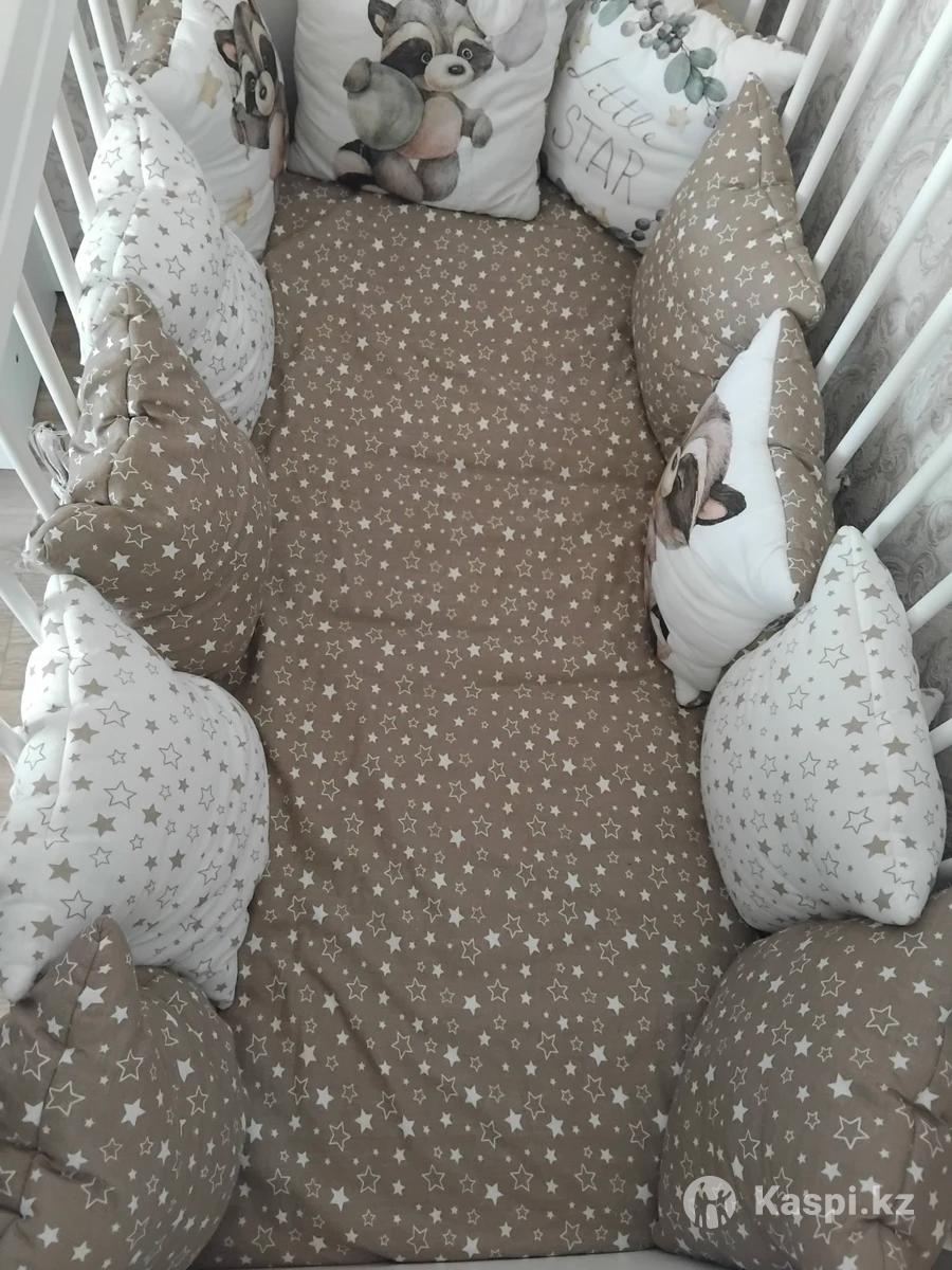 Продам бортики на детскую кроватку, в отличном состоянии. Нейтральный цвет, подходит для мальчика и для девочки. В комплект входит простынь на резинке и 11 подушек. По цене реальному покупателю уступлю, торг есть. Самовывоз 5 мкр. Пожалуйста пишите, на звонки не отвечаю.