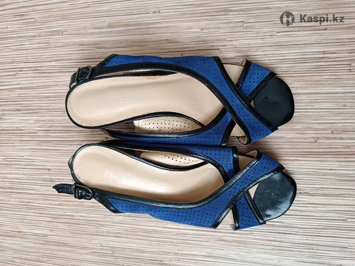 Кожаные нарядные босоножки -туфли, цвет электрик, ножка в них смотрится маленькой и аккуратной, каблучок 4 см, Италия. Были один раз одеты.